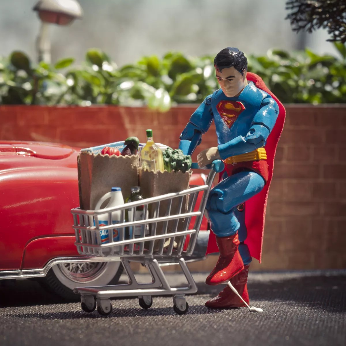 Imagine Superman dressed in his signature blue tights and red cape, a look of unflappable determination molded into his chiseled face, about to face a job that would shake even the strongest man in the universe to his core: cleaning out the litter box. Artist Danny Neumann has Superman in this and other everyday scenes in his new exhibition, “The Super Neumanns: 365 Photos by Danny Neumann.” The show is presented by R. Pela Contemporary (run by longtime New Times contributor Robrt Pela) at Walter Art Gallery, 6425 East Thomas Road in Scottsdale. It follows the Super Neumanns, a family of custom-made action figures, in a year of their lives after they’ve moved into their new Fisher Price Dollhouse. The comedic, insightful, and incredibly detailed vignettes make these superheroes appear to be just like us … kind of.