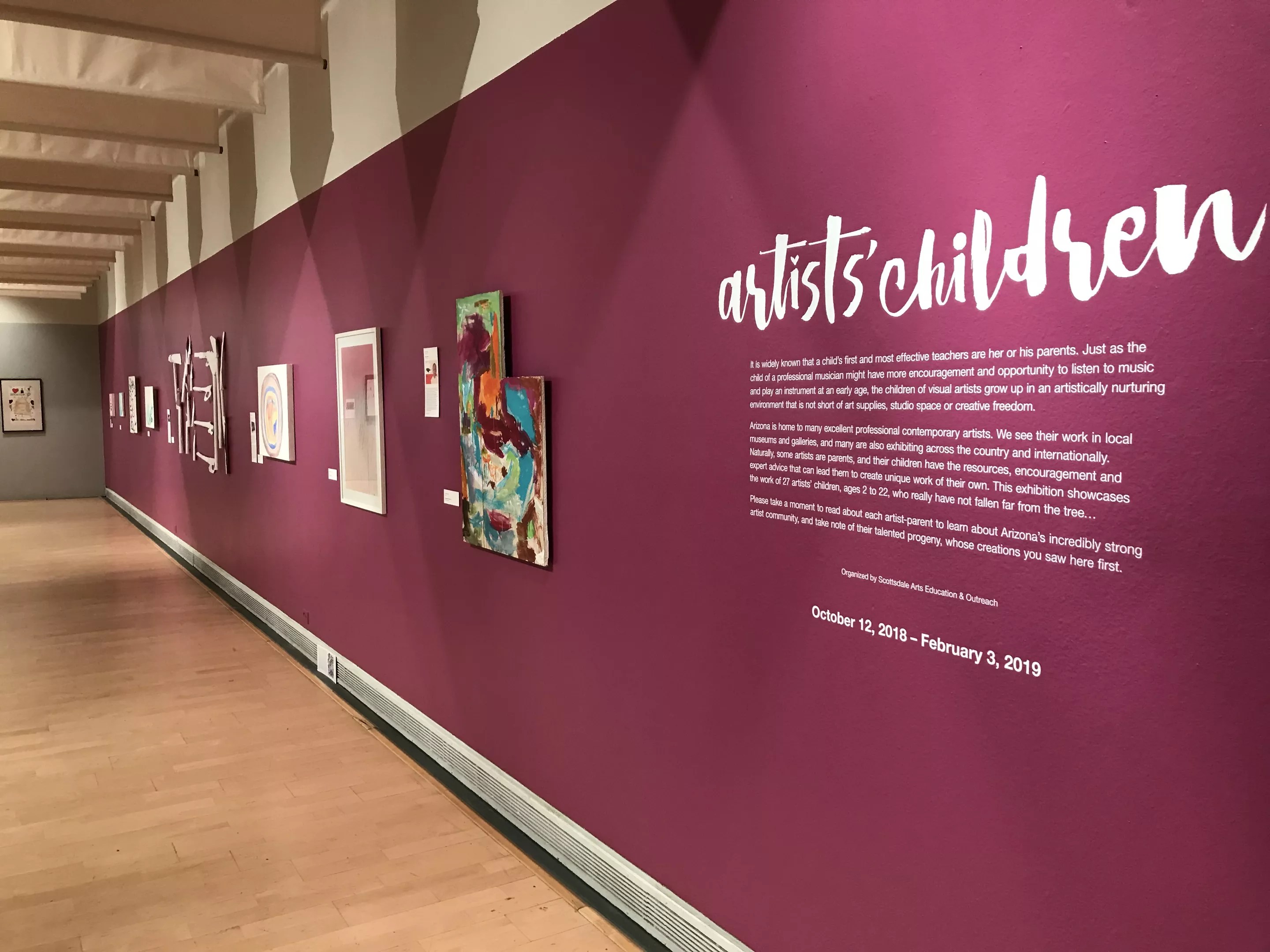 Explore works in several media by artists’ children, who range from toddlers to young adults. Nearly two dozen Arizona creatives have children featured in this free exhibition – including Kristin Bauer, Laura Spalding Best, Brian Boner, Saskia Jorda, Julio César Morales, Lara Plecas, and Randy Slack. Text panels help viewers learn more about each child’s creative parent/s. The gallery is located inside Scottsdale Center for the Arts. Hours vary.