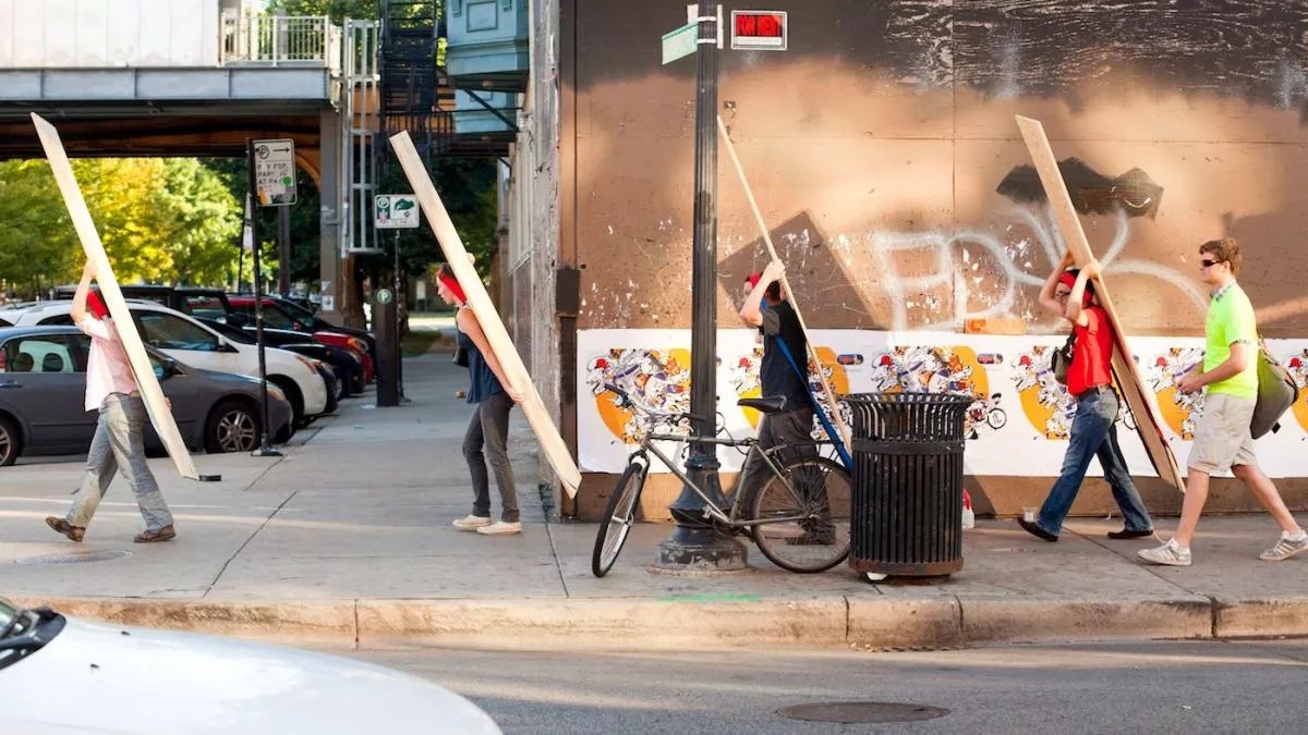 It’s part of the Museum’s “Hannah Barco: Fathomings” exhibition, anchored by an elevated sidewalk Barco built inside the space. The piece references her experience of walking along the streets of Chicago and prompts reflection on the ways walking informs our identity and sense of place.