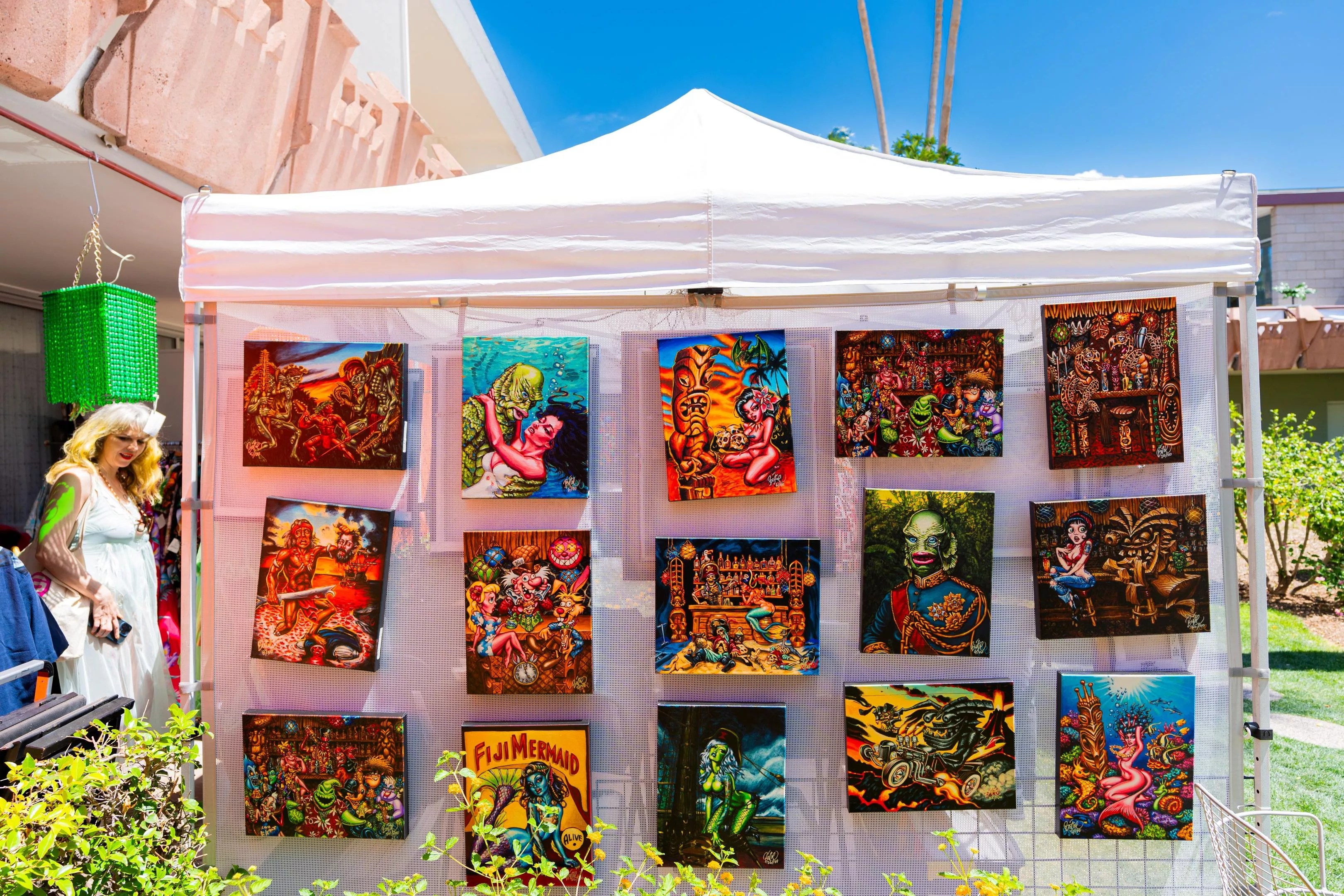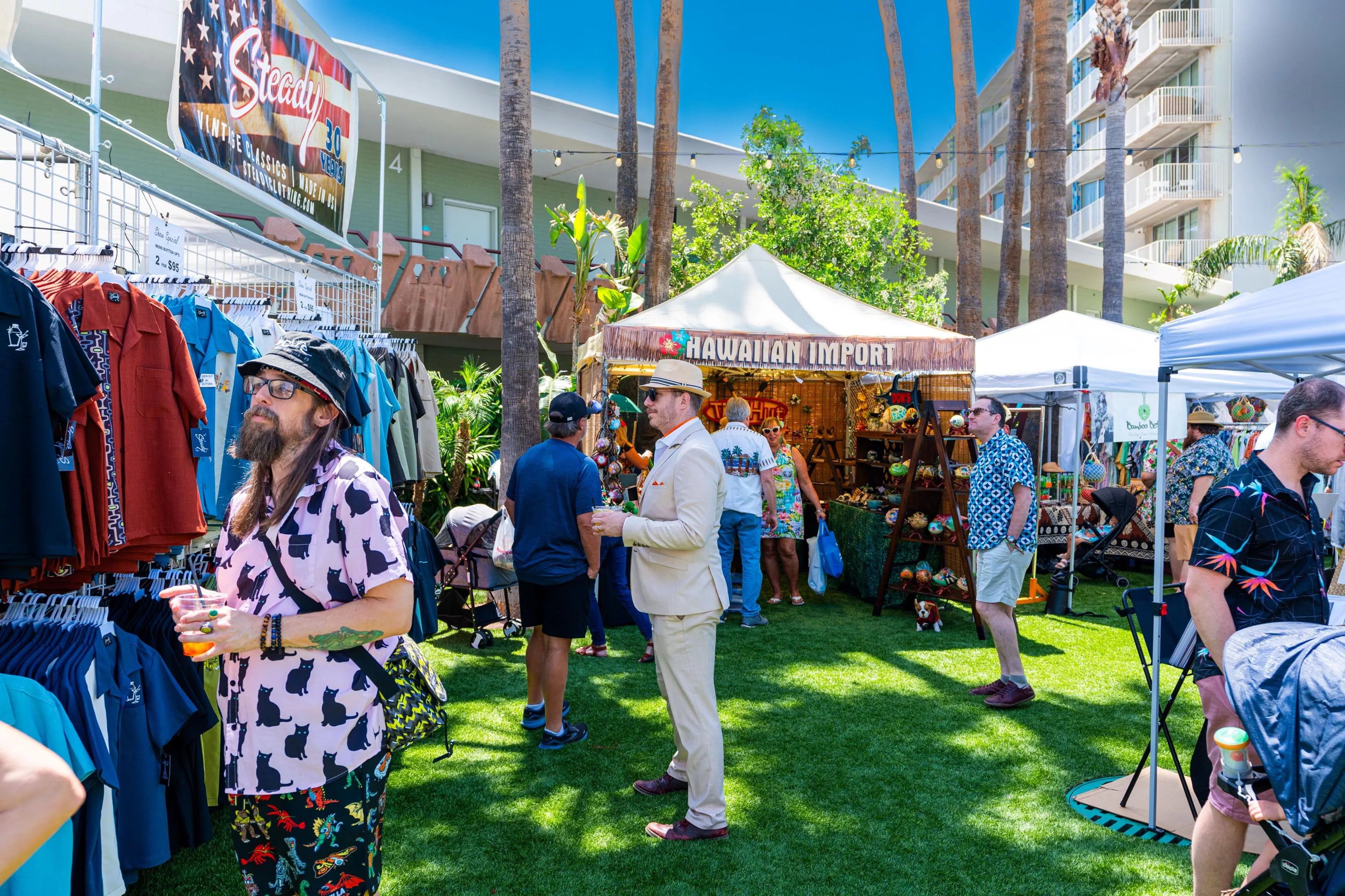 We stopped by the Arizona Tiki Oasis Marketplace, a public event held on the lawn of the hotel, to check out the scene.