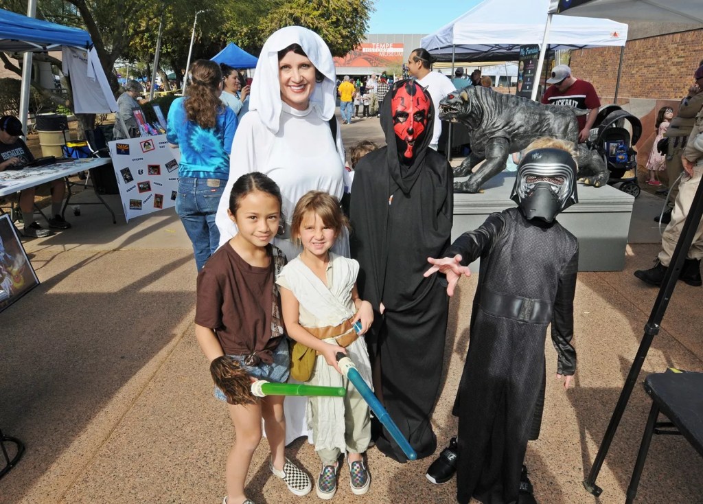 More than 100 vendor tents will fill Tempe FanCon’s outdoor areas. The lineup includes authors Tabitha Shipley and David Alyn Gordon, local artists, retailers, cosplay groups such as the New Arizona Republic, and a wide range of fan-focused organizations.