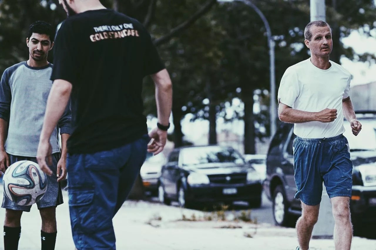 A man runs in the film.