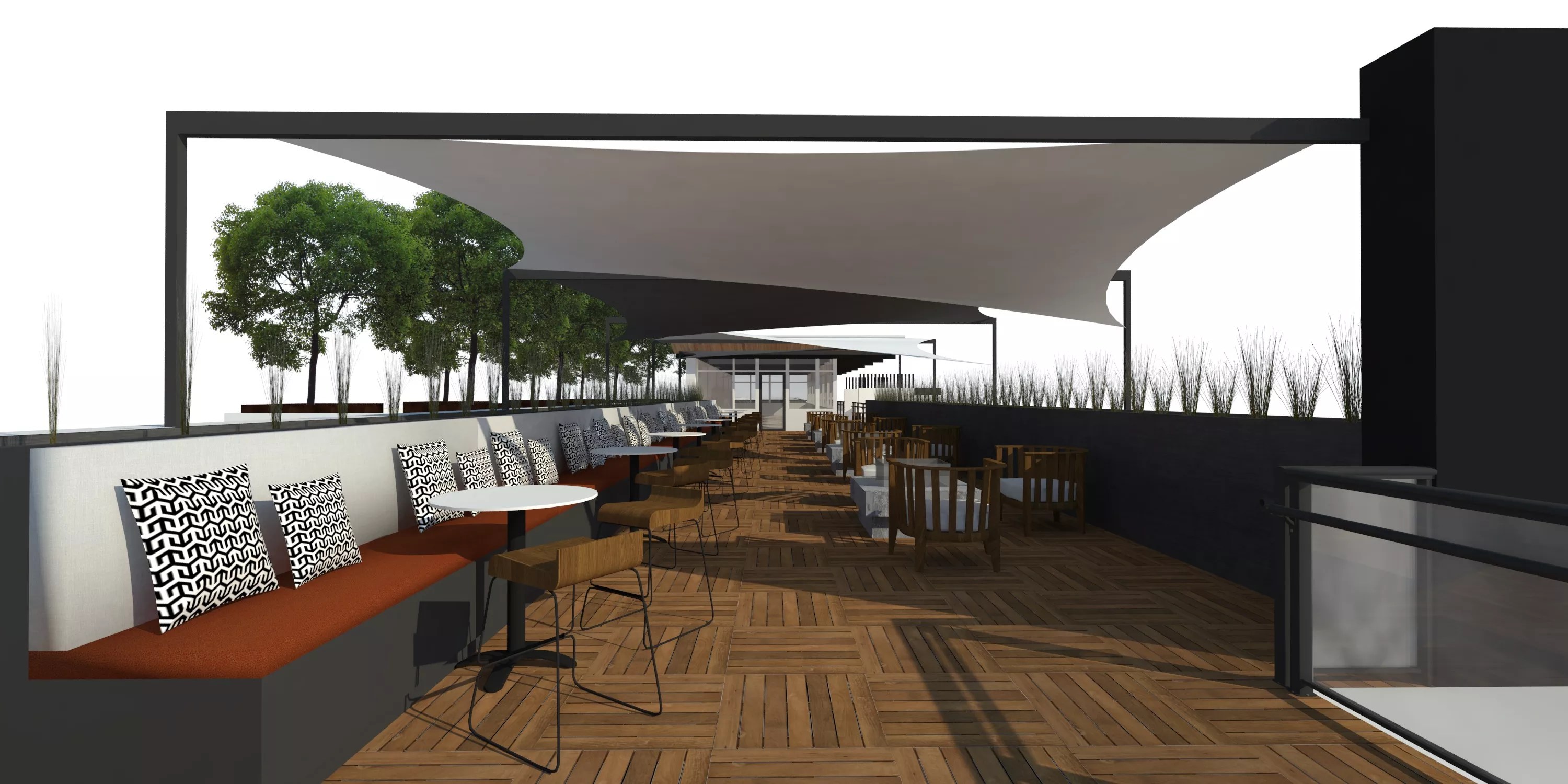 Rendering for Arrive Phoenix rooftop cocktail lounge.