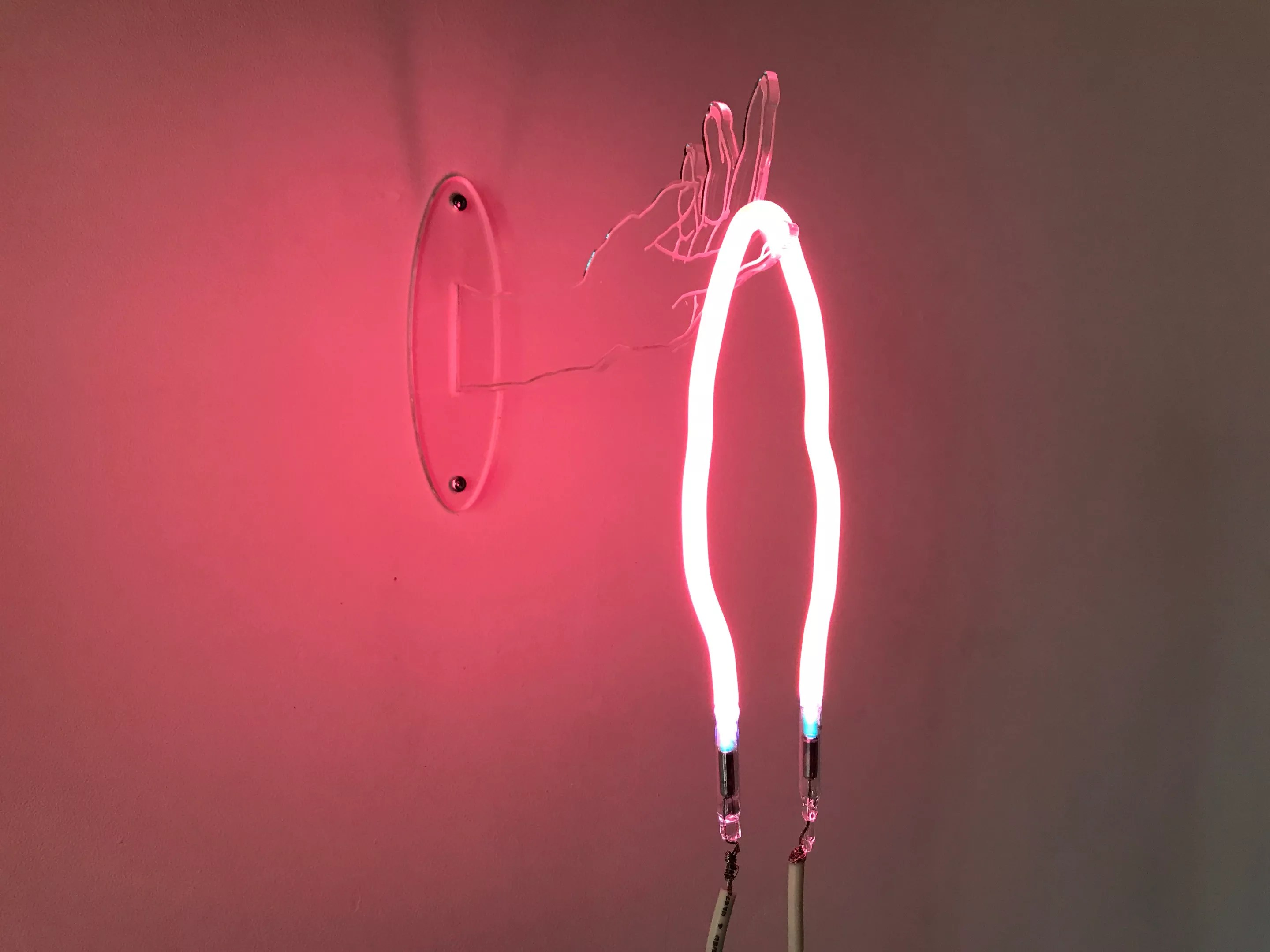 Using neon and etched acrylic, Laura Amphlett created a provocative piece that’s especially relevant in today’s political discourse centered around women’s rights and women’s bodies. Her work was part of the “Truth or Fiction” sculpture exhibition at Grand ArtHaus, featuring works by ASU students working in wood, metal, and other media.