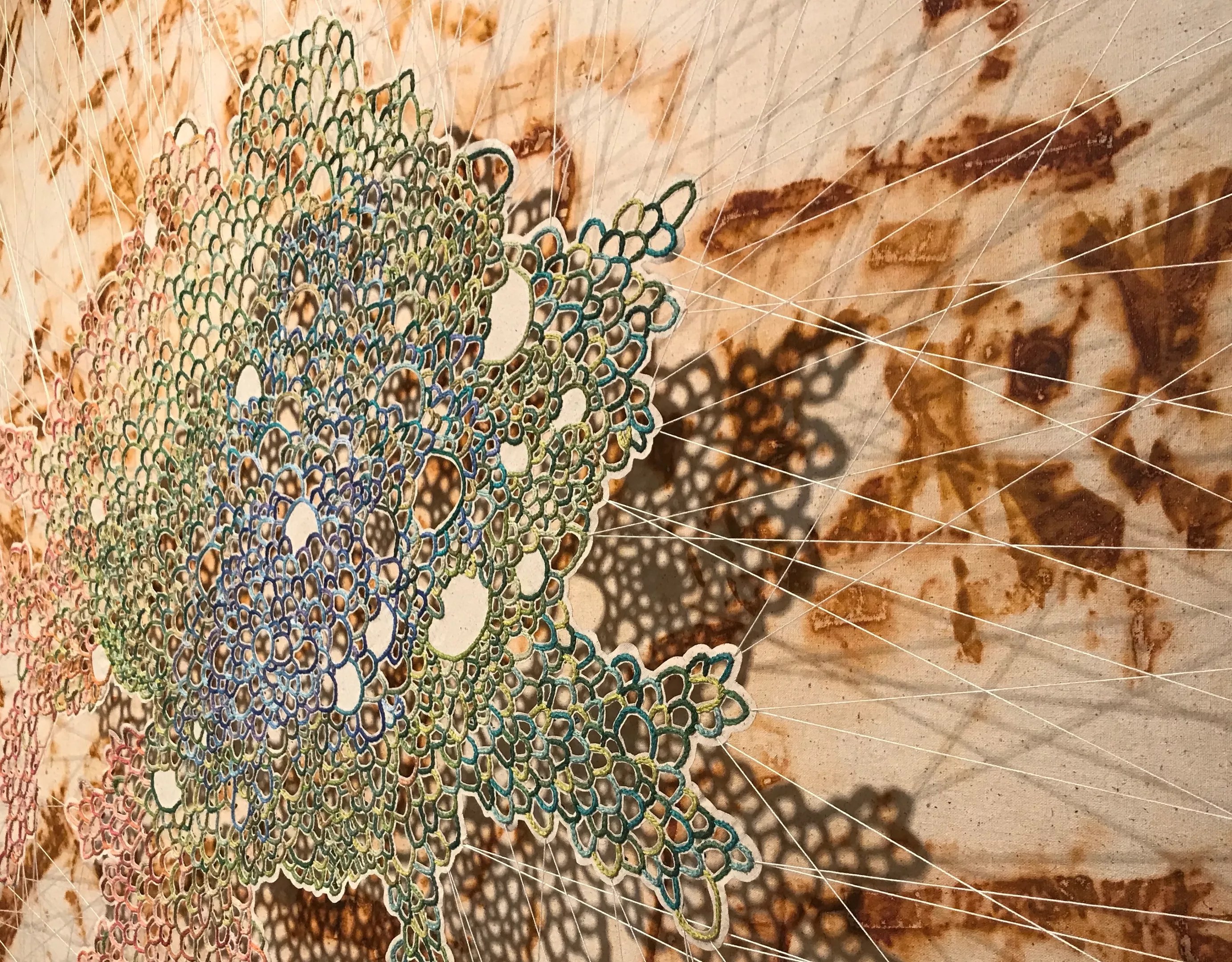 For an exhibition called “It’s a Process” at New City Studio that showed not only completed works, but also video and artifacts revealing the processes behind them, Chelsea Lyles created several pieces of fiber art that reflect complex forms and relationships present in nature.