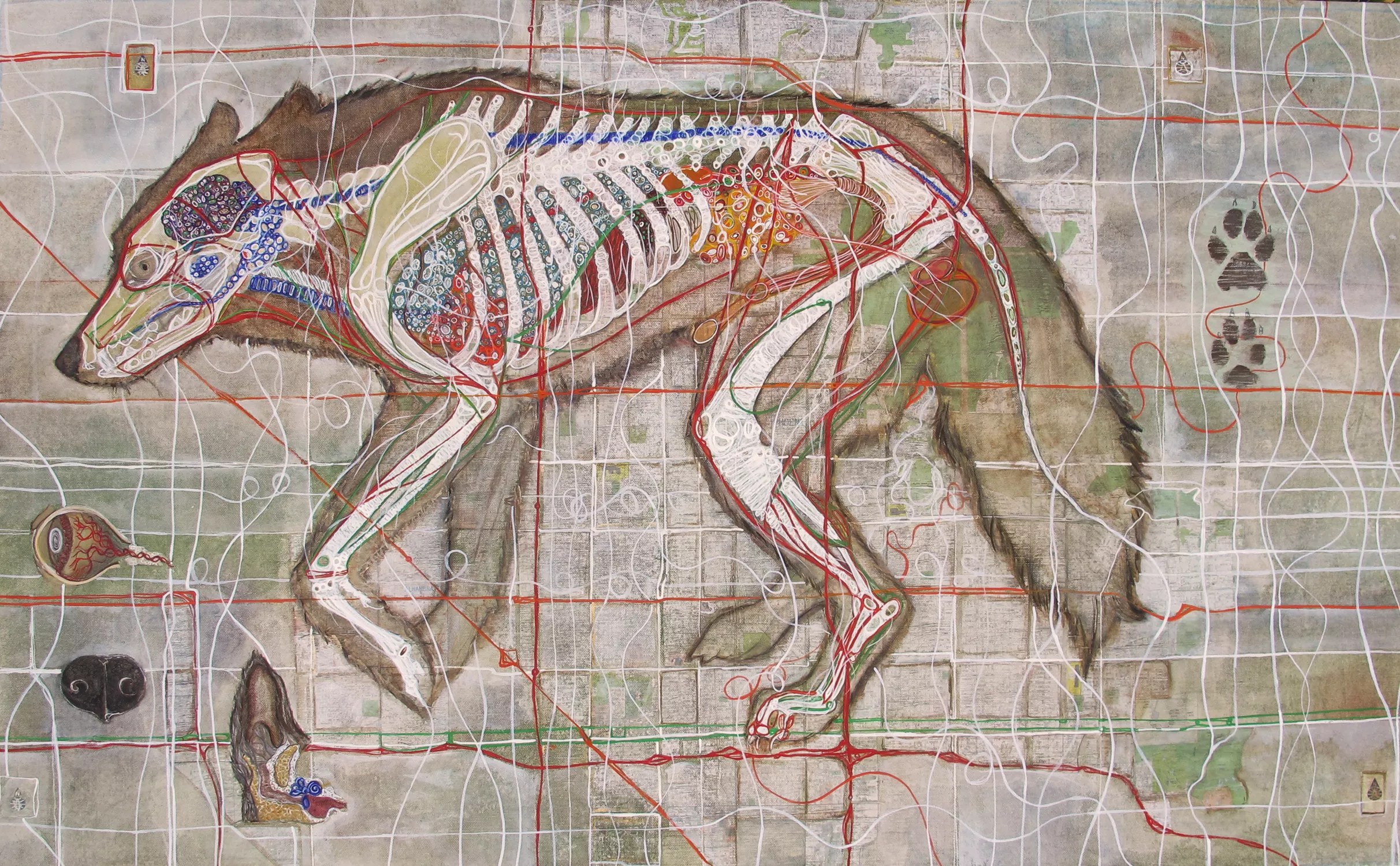 When artist and curator Nicole Royse decided to open her own gallery called Royse Contemporary, she chose a Scottsdale location near Tilt Gallery and Lotus Contemporary. And she selected the small group of artists whose work would comprise her first exhibition in the new space, including Monica Aissa Martinez. Her casein-and-egg tempera coyote on canvas was inspired by an actual urban coyote encounter.