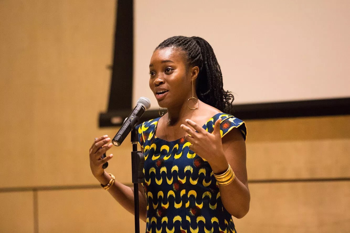 Storyteller Rachel Eseoghene Egboro performs at Phoenix Art Museum.