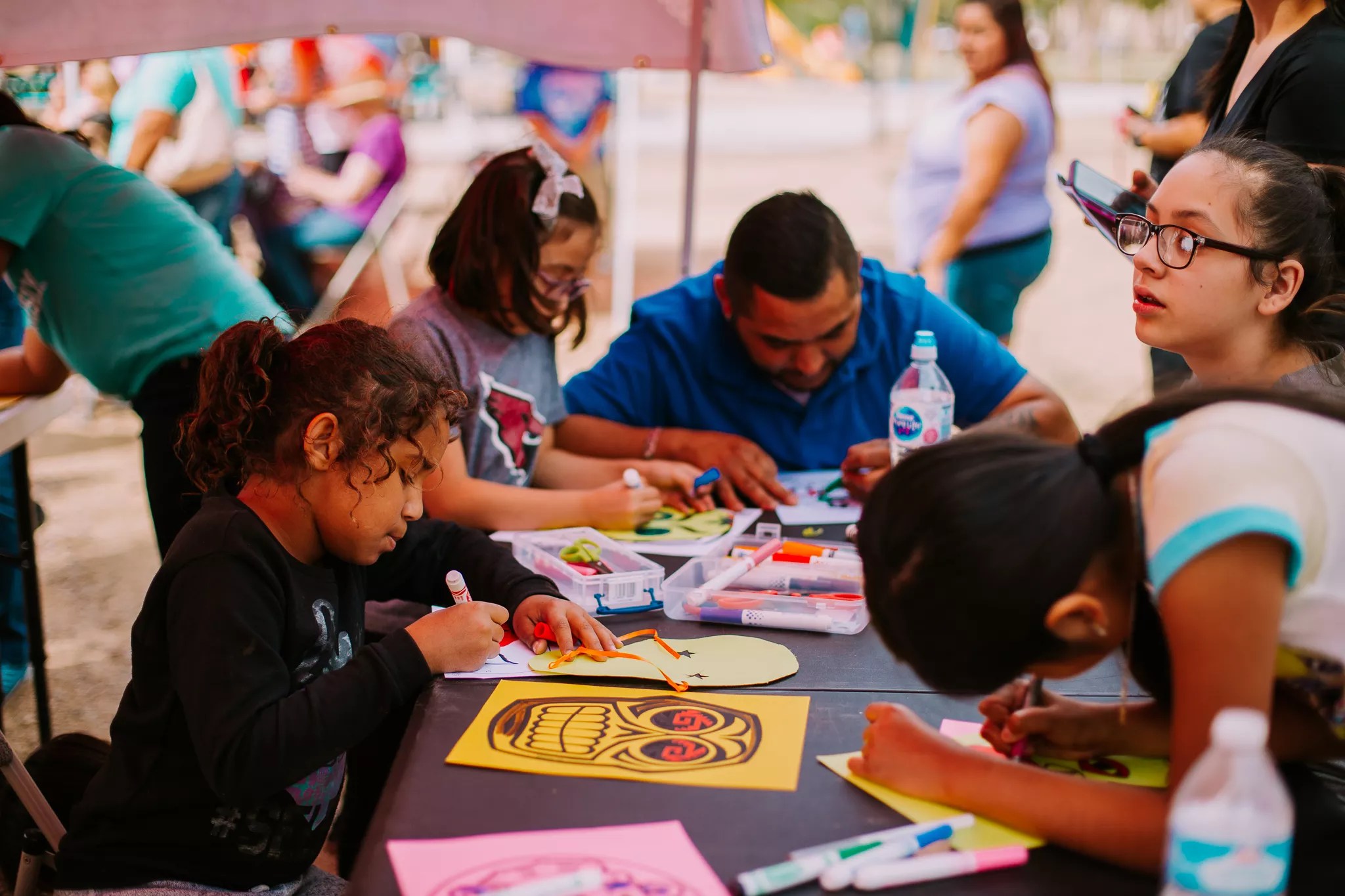 There’s plenty of lore around the game of bingo, where people try to match the numbers on their game cards with numbers that get called out for the crowd of eager participants hoping to take home the night’s winnings, which vary depending on where you’re playing and what’s at stake. It’s thought to have originated in 16th century Italy, but by the 1920s it had made its way to New York. Naturally, a traveling salesman was involved, but that hasn’t dampened the enthusiasm of its fans through the years. Join fellow geeks for a unique spin on bingo on Saturday, September 18, as Atomic Age Modern, 140 West Mesa Street, Mesa brings Tiki Bingo to the table. It’s happening from 7 to 10 p.m., and you can get two bingo cards for $10. Here’s your chance to rock your best tiki-inspired fashion and accessories, and say goodbye to another stressful week with a night of old-fashioned fun. Lynn Trimble Families making mask-inspired artworks. Cultural Coalition