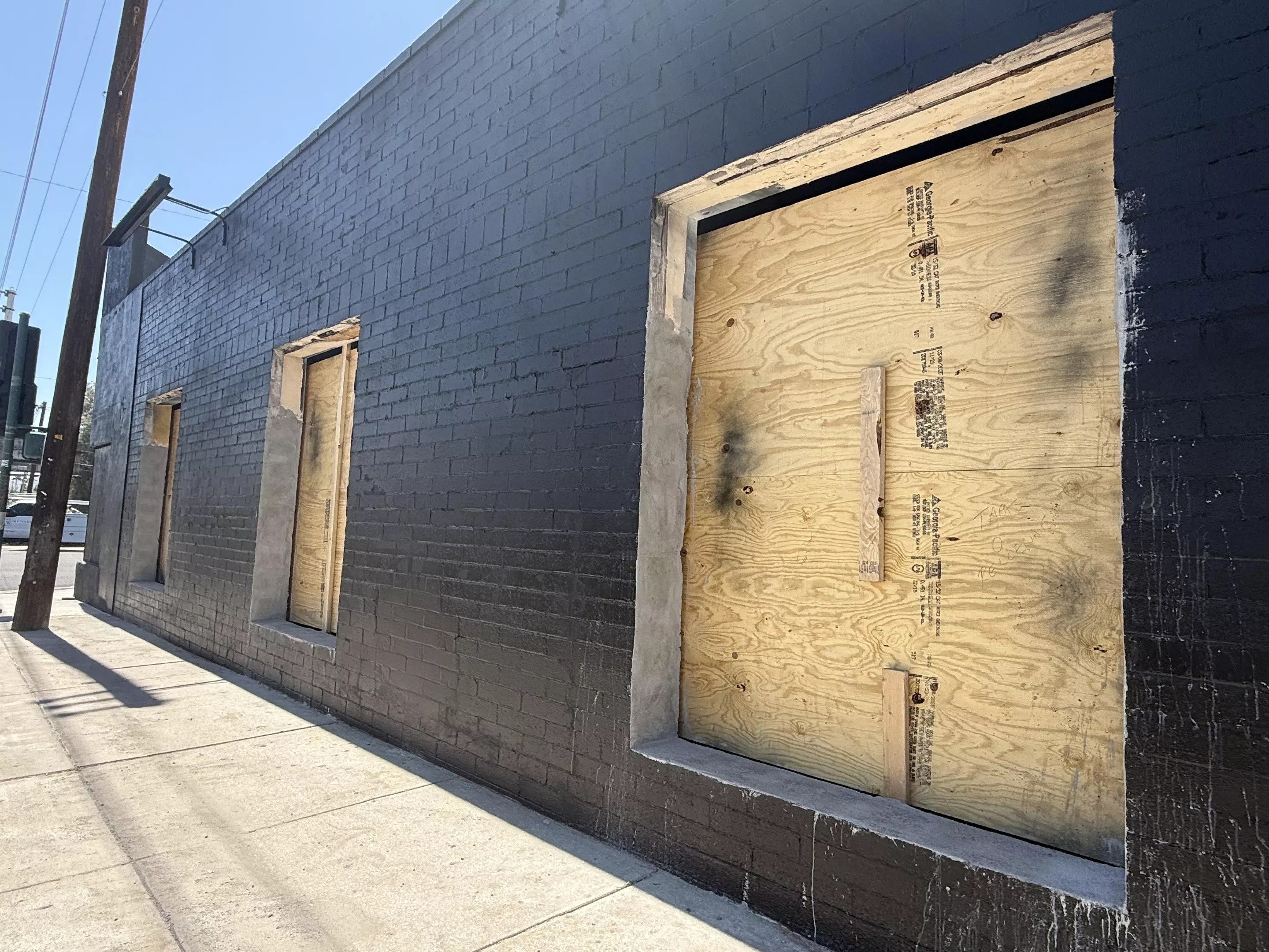 The “Super Barrio Bros.” mural has been replaced with black paint.