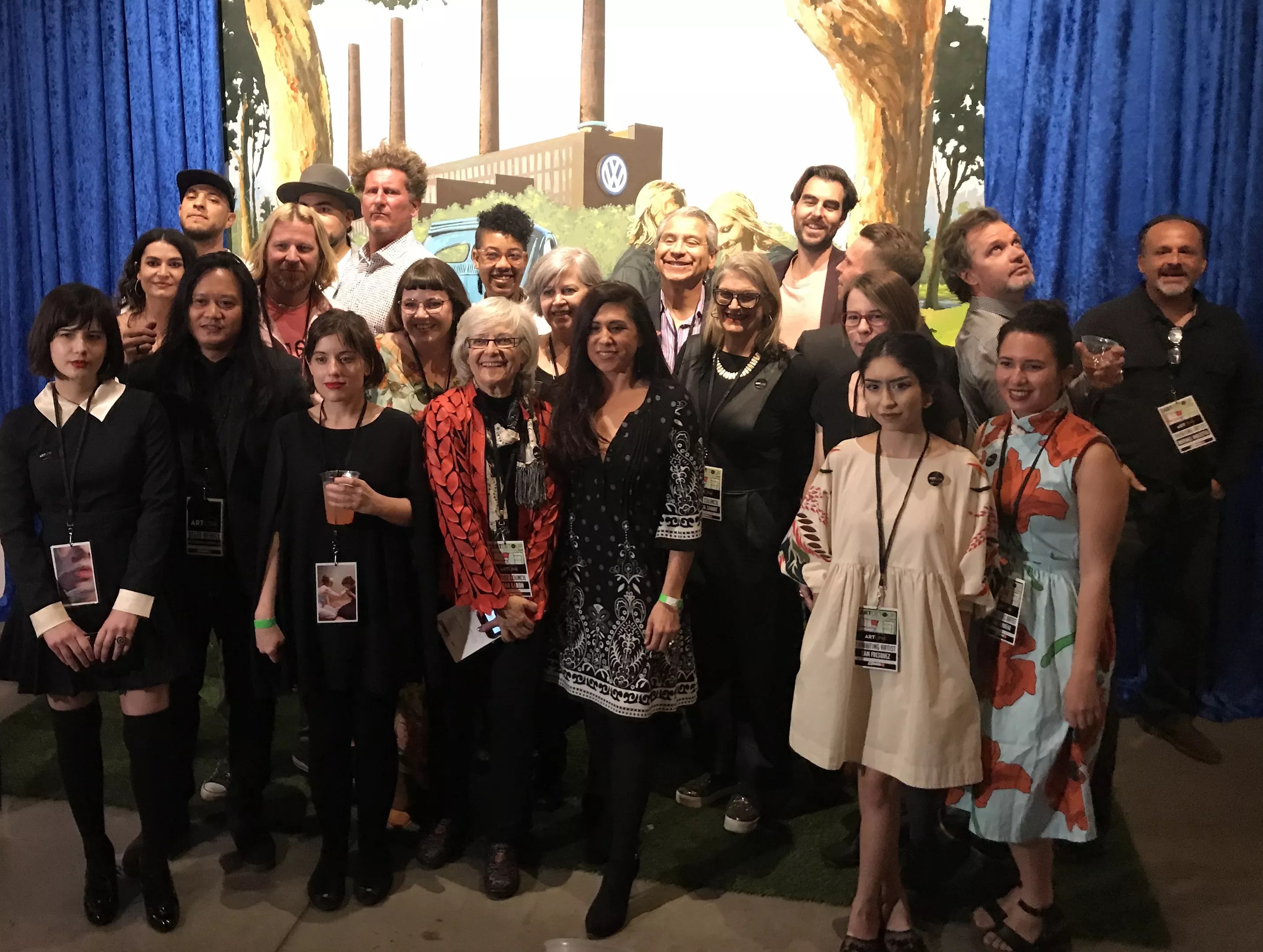 Creatives gather for a group photo while checking out a previous “Chaos Theory” exhibit,