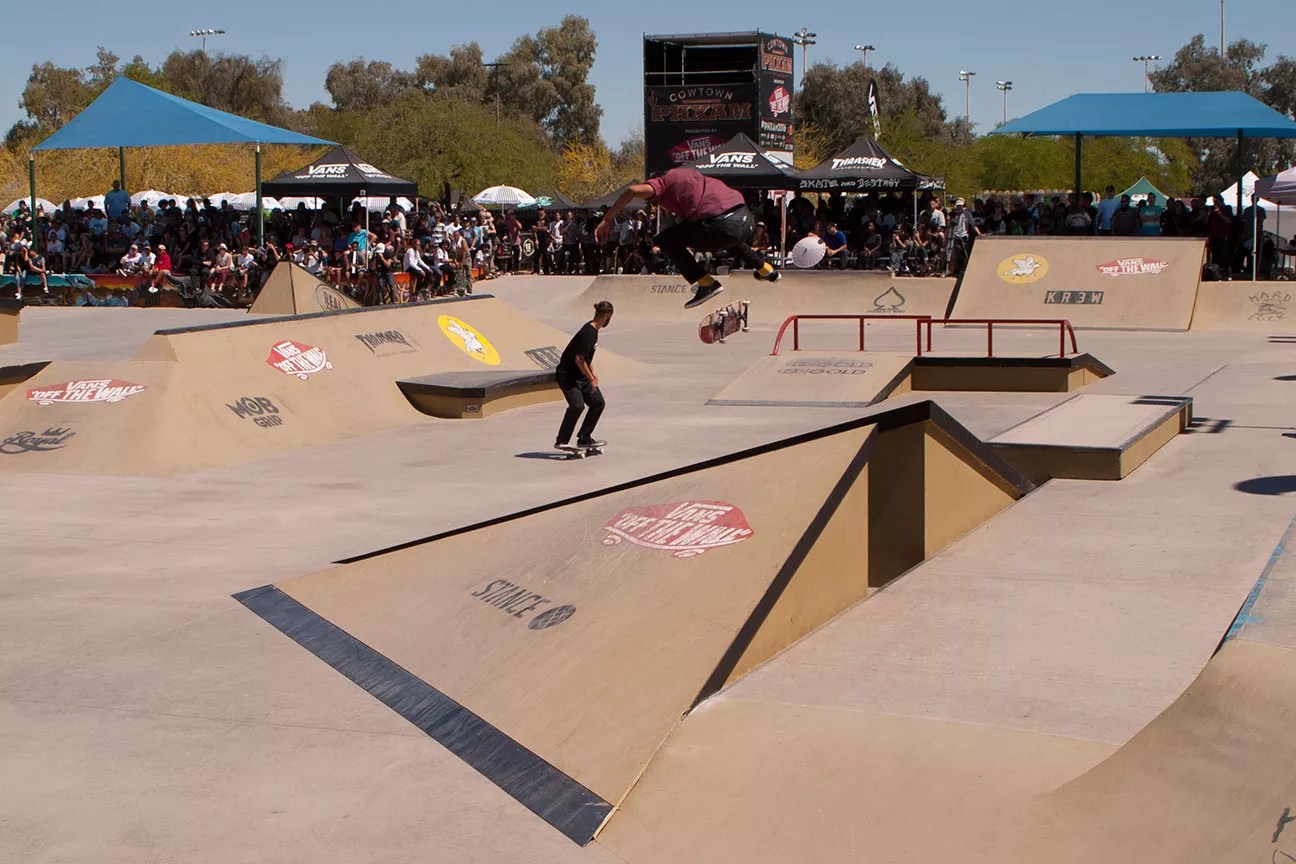 Spectator tickets are $5 each person, each day, and can be purchased at all four (Phoenix, Glendale, Tempe, and Litchfield Park) locations of Cowtown Skateboards, or the website. Find more information at the PHXAM website – where Sunday’s semifinals, finals, and best trick event will also be streaming live.