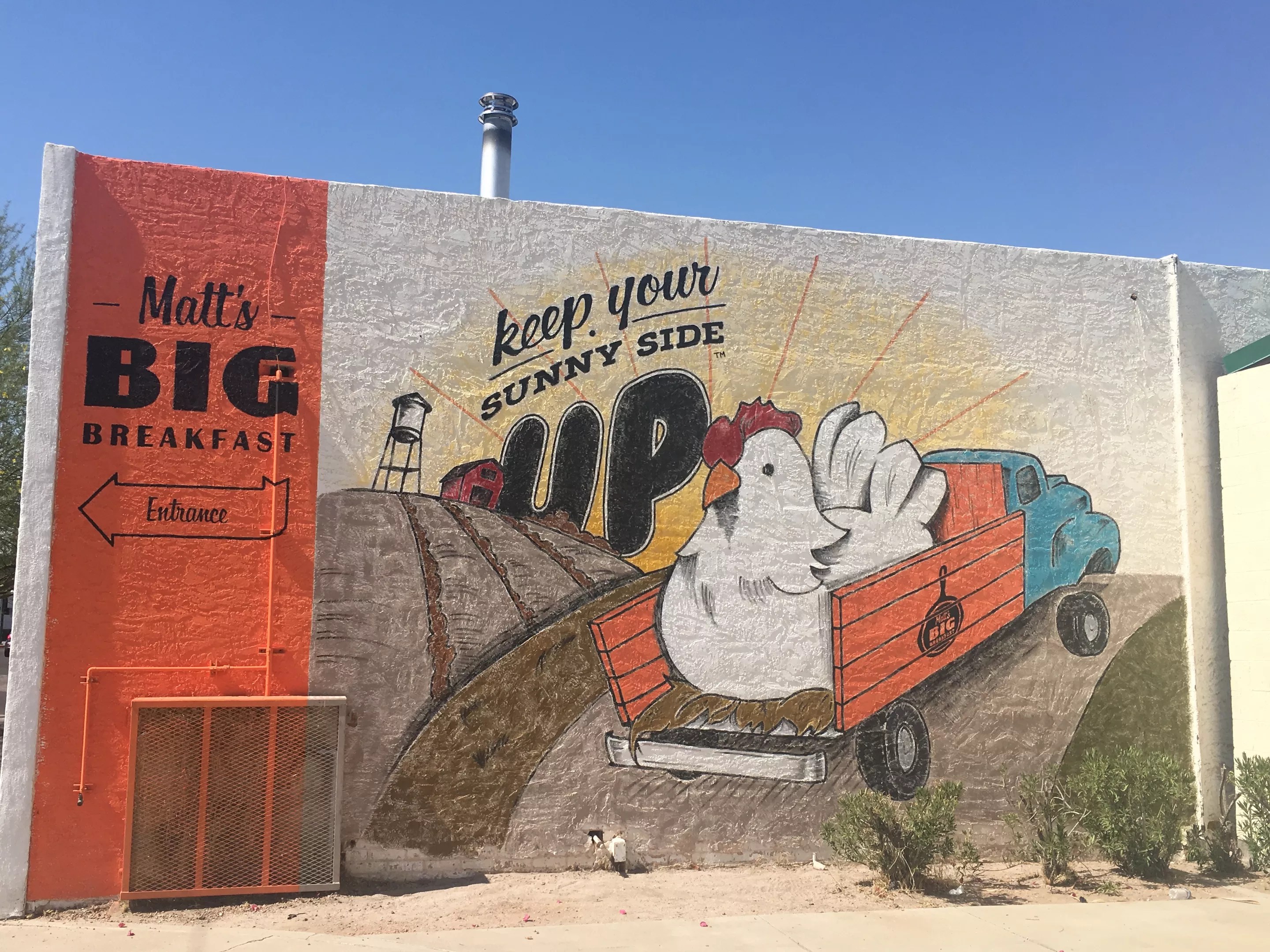 Matt’s Big Breakfast has this mural-style ad on its Roosevelt Row location.