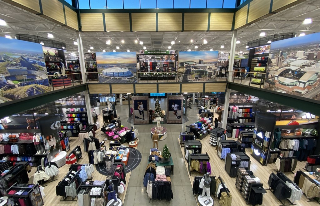 Large-scale photos of Phoenix sports stadiums loom inside Dick’s House of Sport in Glendale.