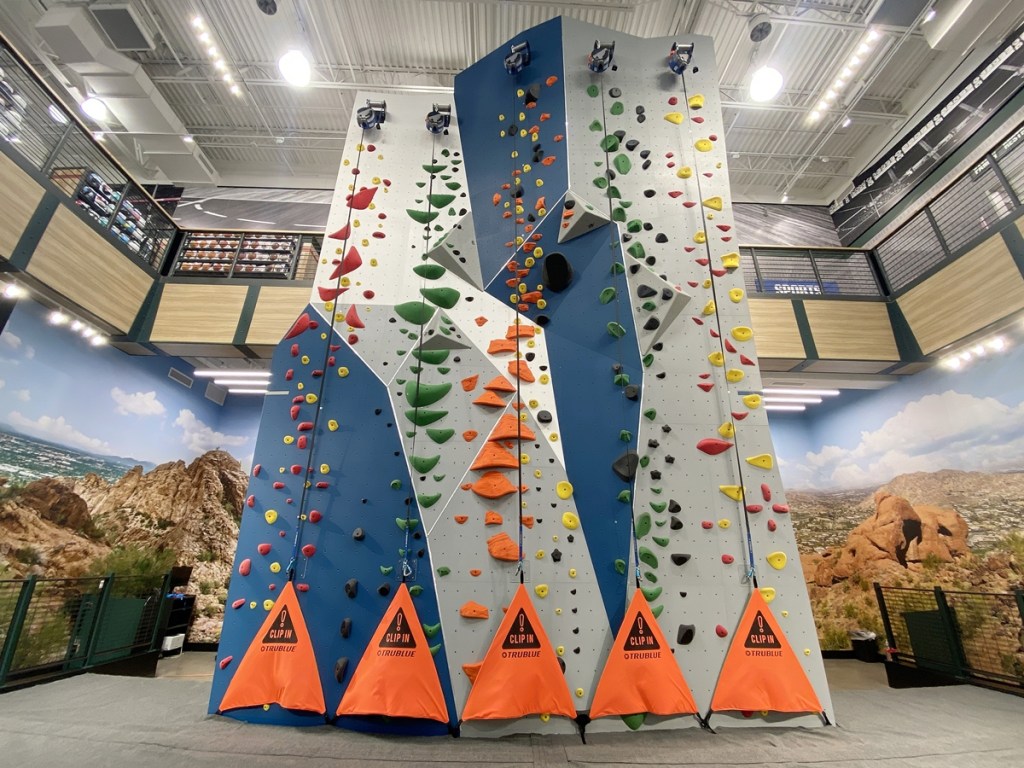 Dick’s House of Sport boasts a two-story rock-climbing wall.