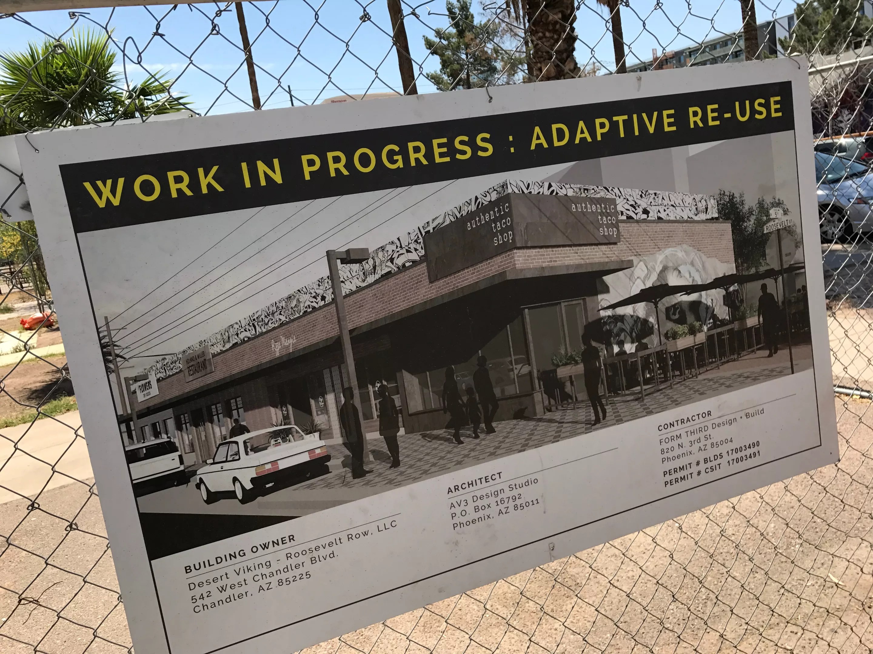 Last year, Chandler-based developer Desert Viking bought the building, which most recently was home to Flowers Beer & Wine, Five15 Arts, Lotus Contemporary Art, and Galleria Celtica. Desert Viking will use the building, along with a few surrounding structures and lots, to create a mixed-use development called The Blocks of Roosevelt Row.