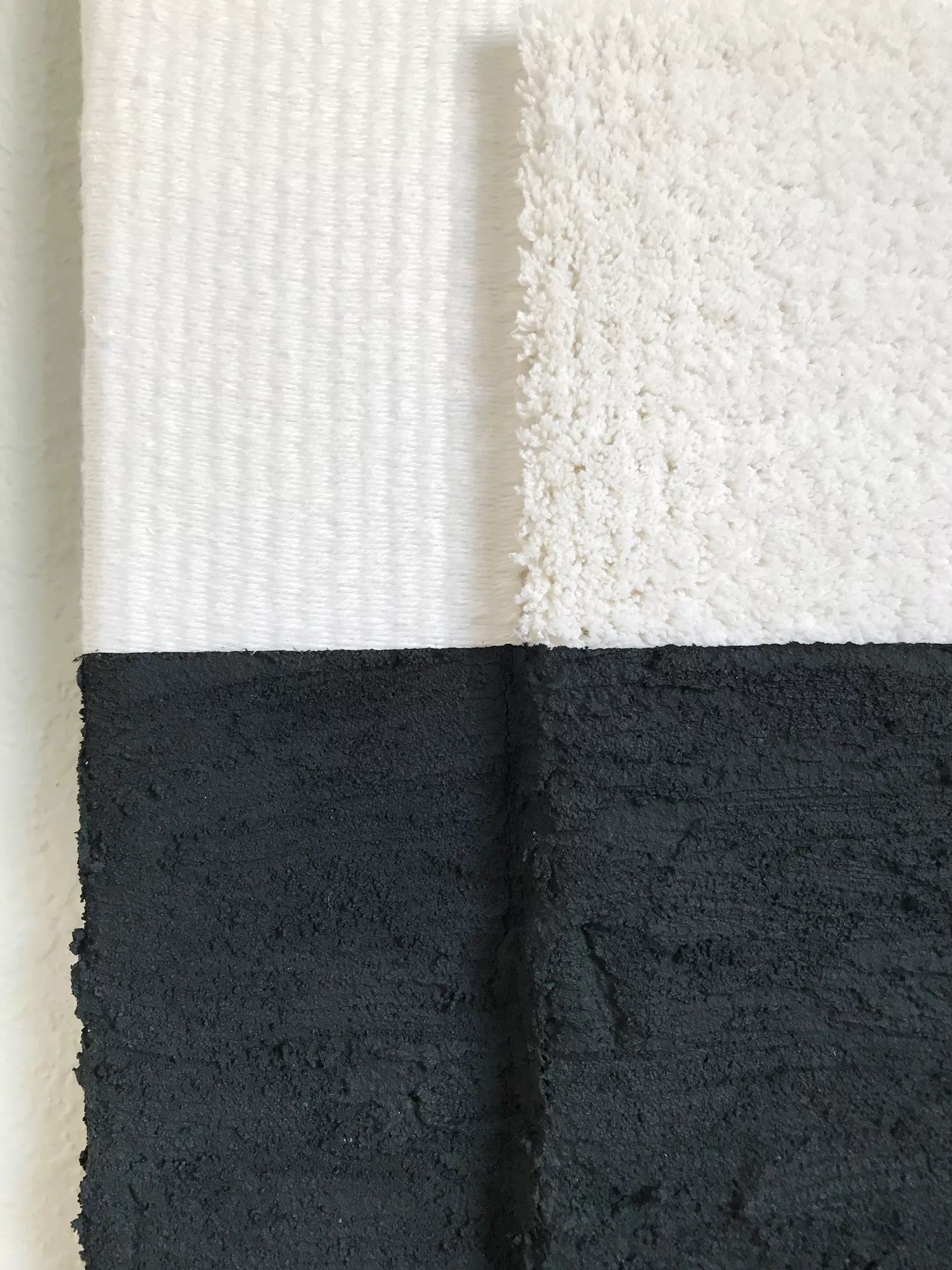 Sazdanoff utilizes everyday materials, like linen and concrete, that are woven together to create a three-dimensional texture across her canvas. Her minimalist, mixed-media work aims to create a tangible balance of fluidity and contrast.