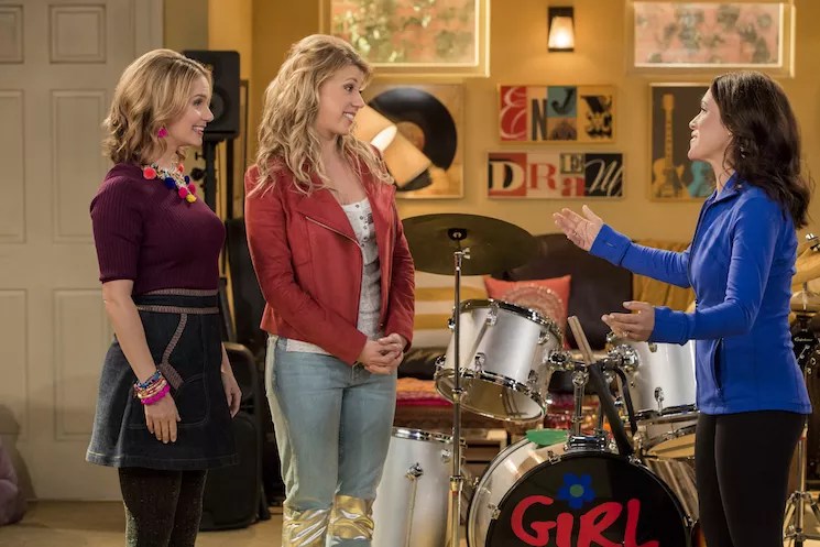 Although Steph is hesitant at first, she eventually gets on board. The drummer is long gone, so there’s an opening for Rock Band champion DJ Fuller to jump in. They get together later that afternoon and rehearse in Steph’s bedroom. They call up their old bassist, Gia Mahan (Marla Sokoloff), who is a full-fledged soccer mom, complete with minivan and yoga pants. Nevertheless, she’s ready to rock. They get set up, which includes DJ dressing as Courtney Love and color coding the drum kit (like rock bands do). They decide to practice to the only song they know, “The Sign” by Ace of Base. As expected (because it’s a really hard instrument!) DJ can’t keep a beat, and the entire thing implodes – again.