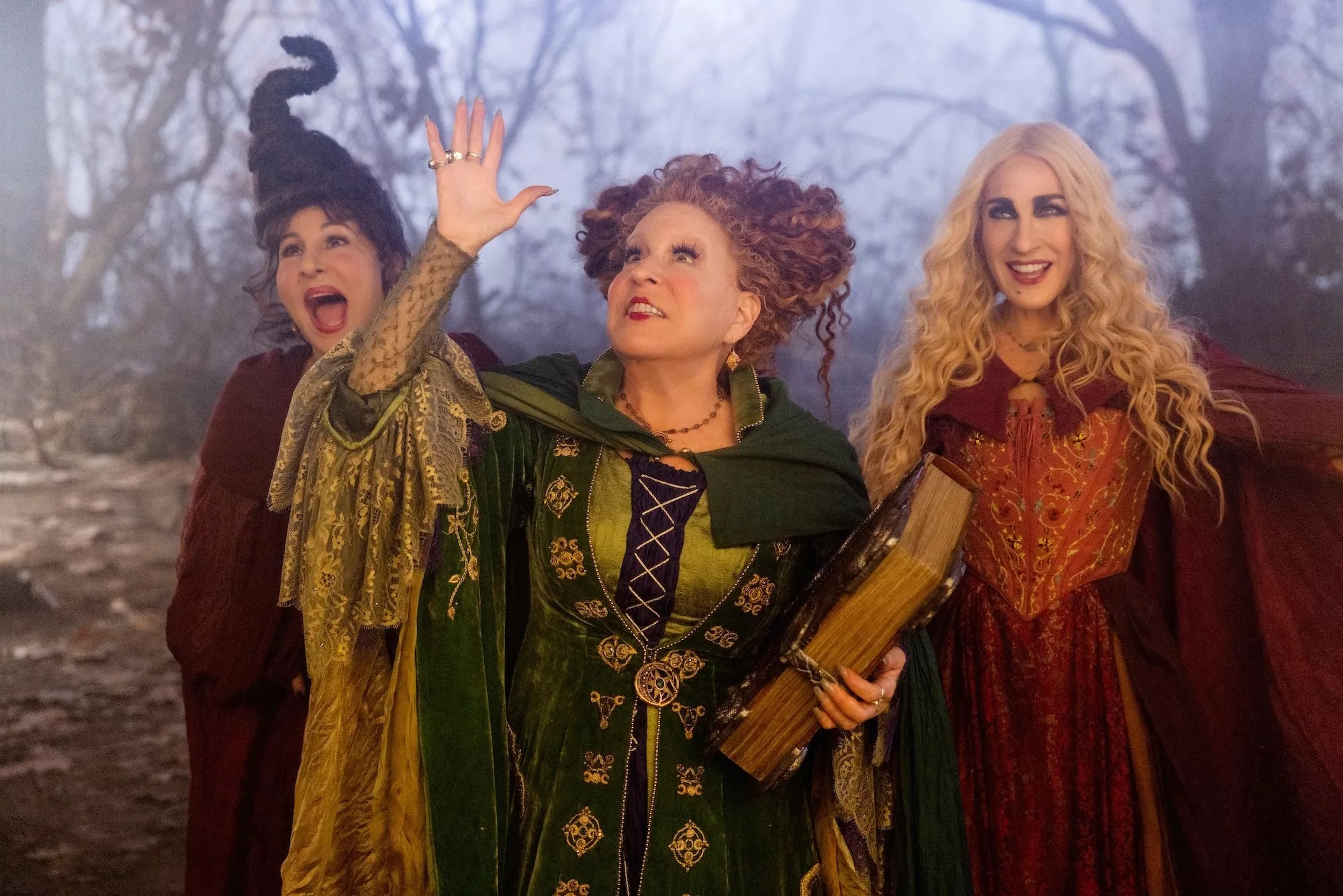 Kathy Najimy (left), Bette Midler (center), and Sarah Jessica Parker (right) from Hocus Pocus 2.