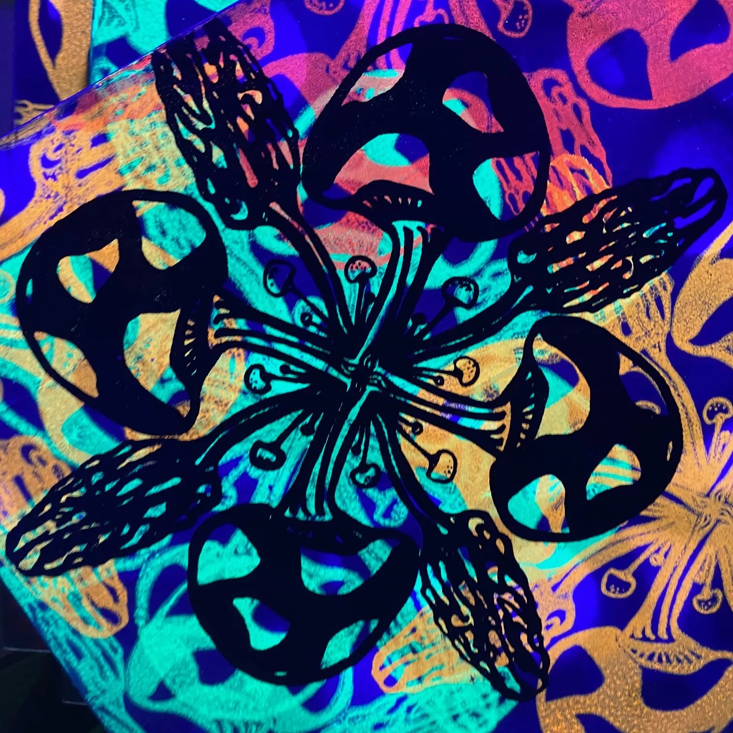 Lately, she’s been making mushrooms and mandalas inspired by a symbol for chaos, putting them on panels and T-shirts she’ll be hiding for Saturday’s event. “The idea is that all these pieces get put in public places, so more people can experience art.”