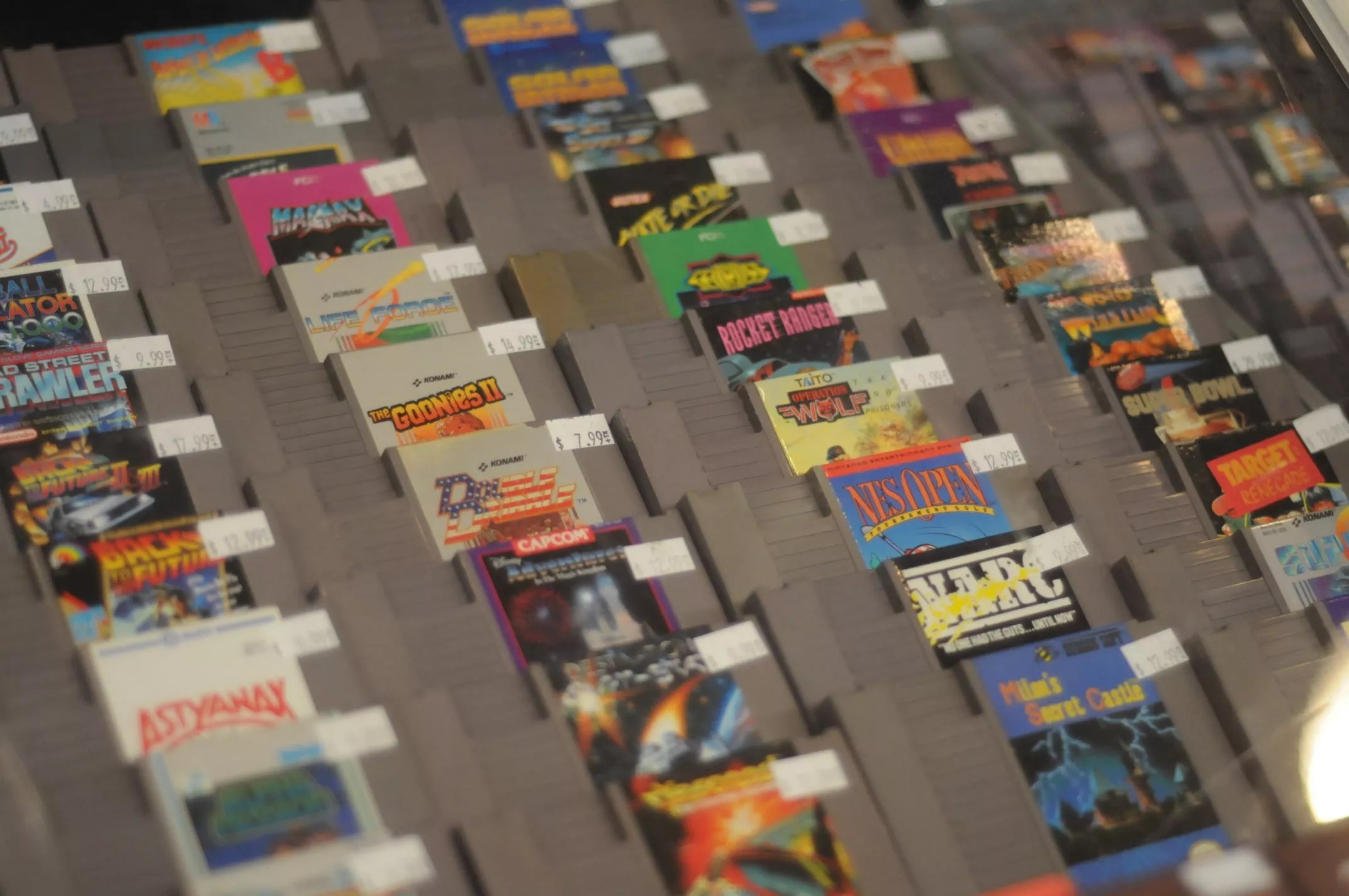 Old-school Nintendo cartridges for sale at last year’s Game On Expo.