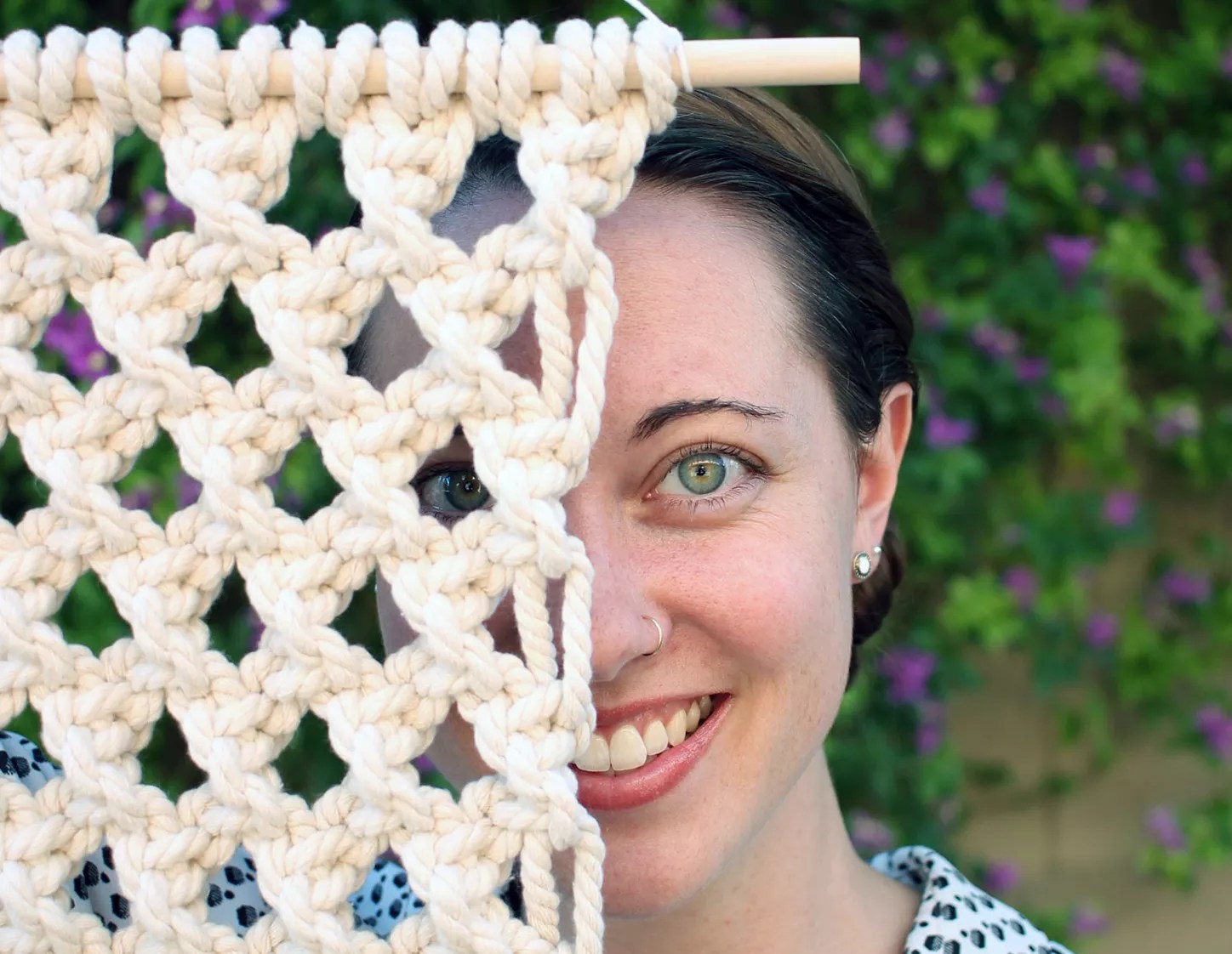 Amy Guerrero with one of her macrame wall hangings.