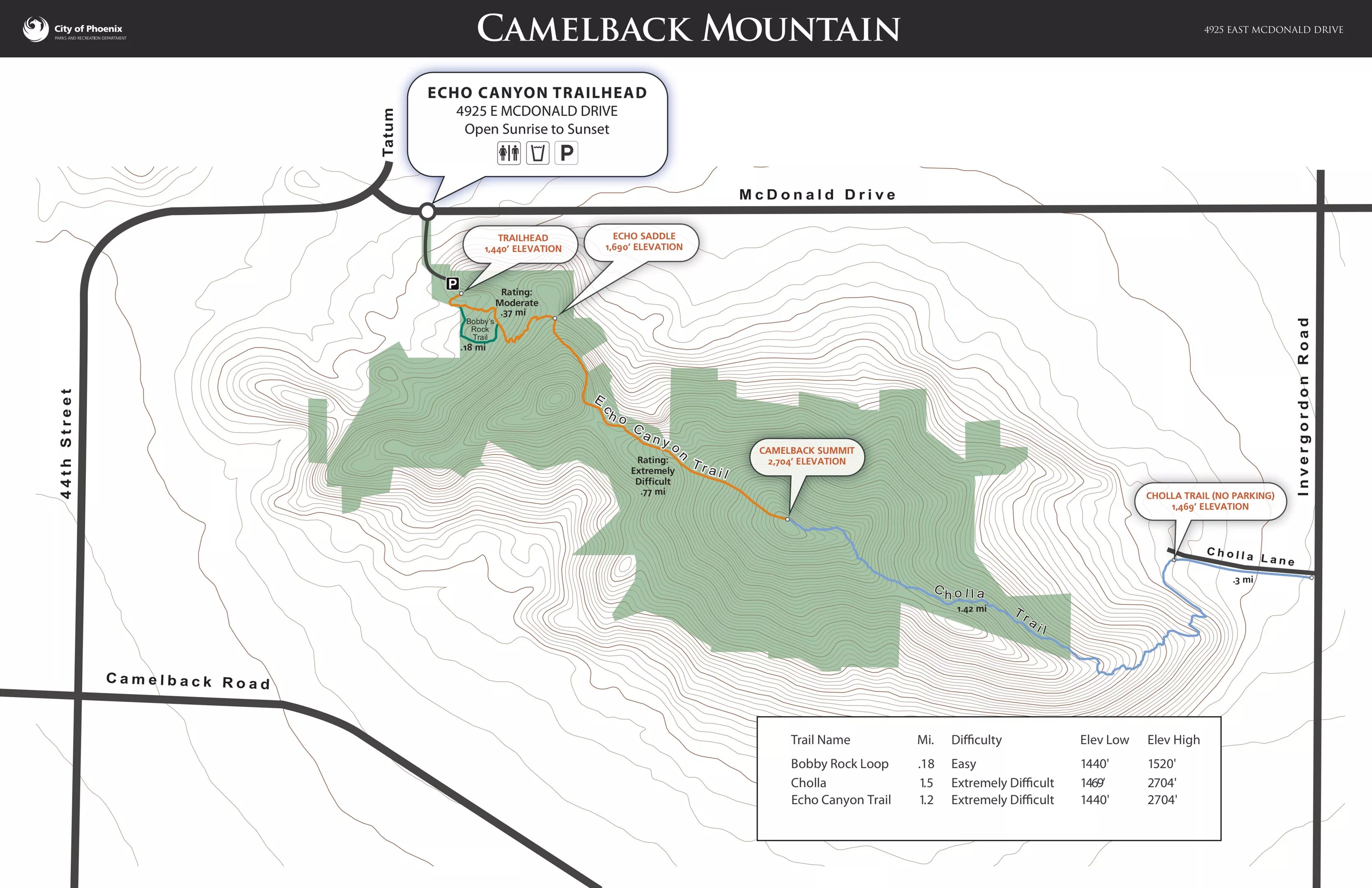 Parking is, frankly, a nightmare. There’s no official parking lot at Cholla and the small parking lot at Echo Canyon fills up fast. There’s limited street parking, but the residents hate it. Your best bet is to find a retail parking lot nearby and take an Uber or Lyft.