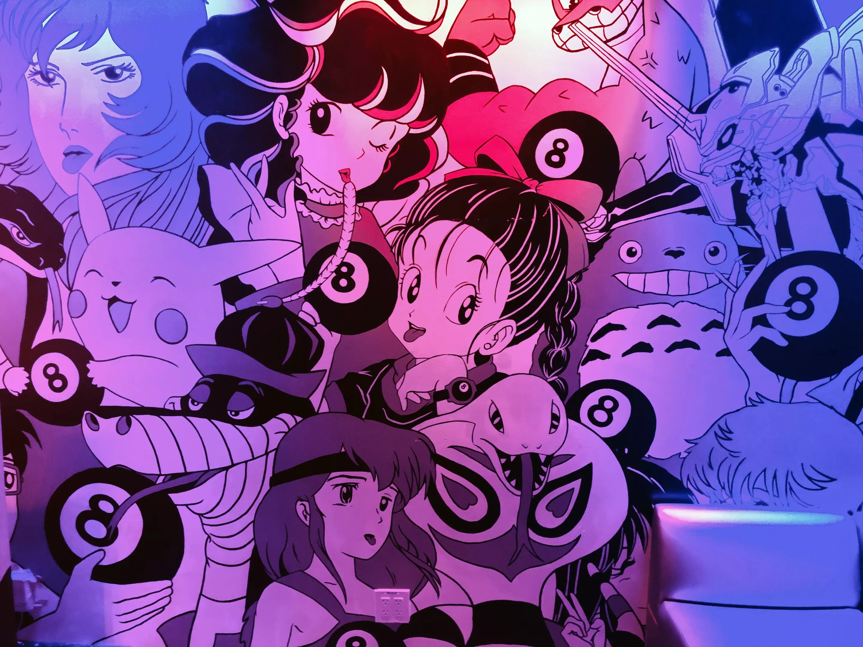Anime-inspired artwork by Joshua Rodes inside Hi-Score Club.