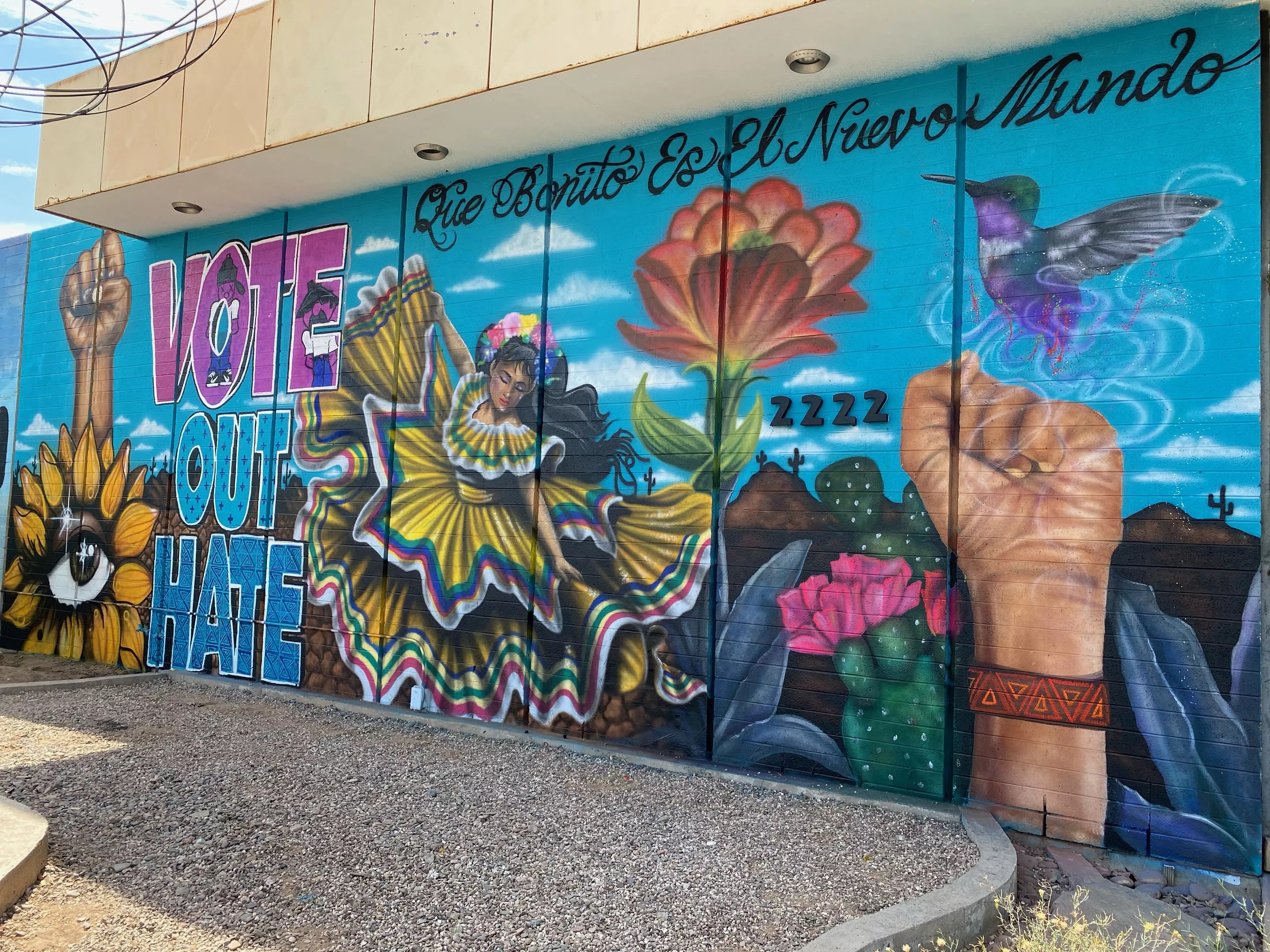 La Morena worked with several fellow artist to paint a new Vote Out Hate mural at The Hive, a creative space located at 2222 North 16th Street. Bacpac painted They Risked Death to Vote; You Don’t Have To on Seventh Avenue near the I-10 freeway. Poet Natalie Diaz is a 2020 National Book Awards finalist. Arizona State University