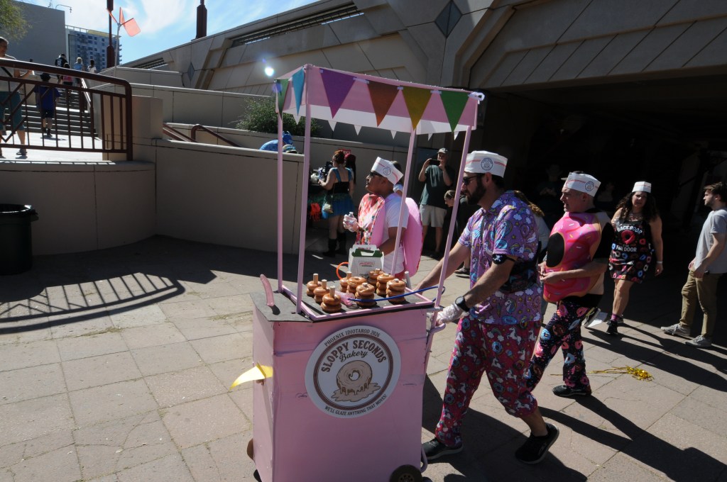 A total of 18 teams took part in this year’s Phoenix Idiotarod. Each showed up with a theme and a willingness to fully commit. Some leaned into pop culture. Pokémon characters darted through traffic. Super Mario made an appearance. So did the wizards of “The Lord of the Rings.” Others skipped subtlety and went straight for innuendo. Team names like Autoerotic Acceleration and Sloppy Seconds Bakery made sure of that.