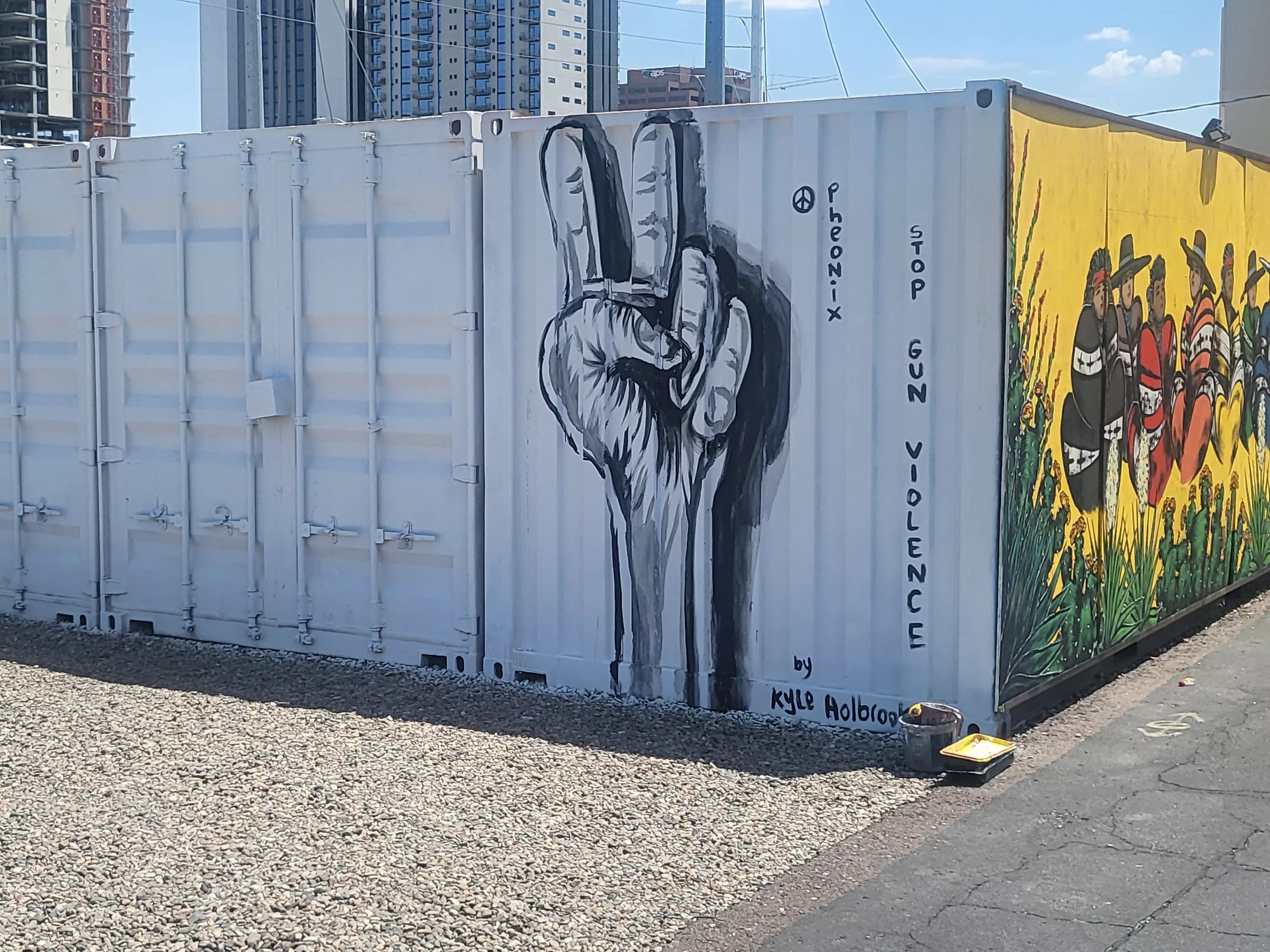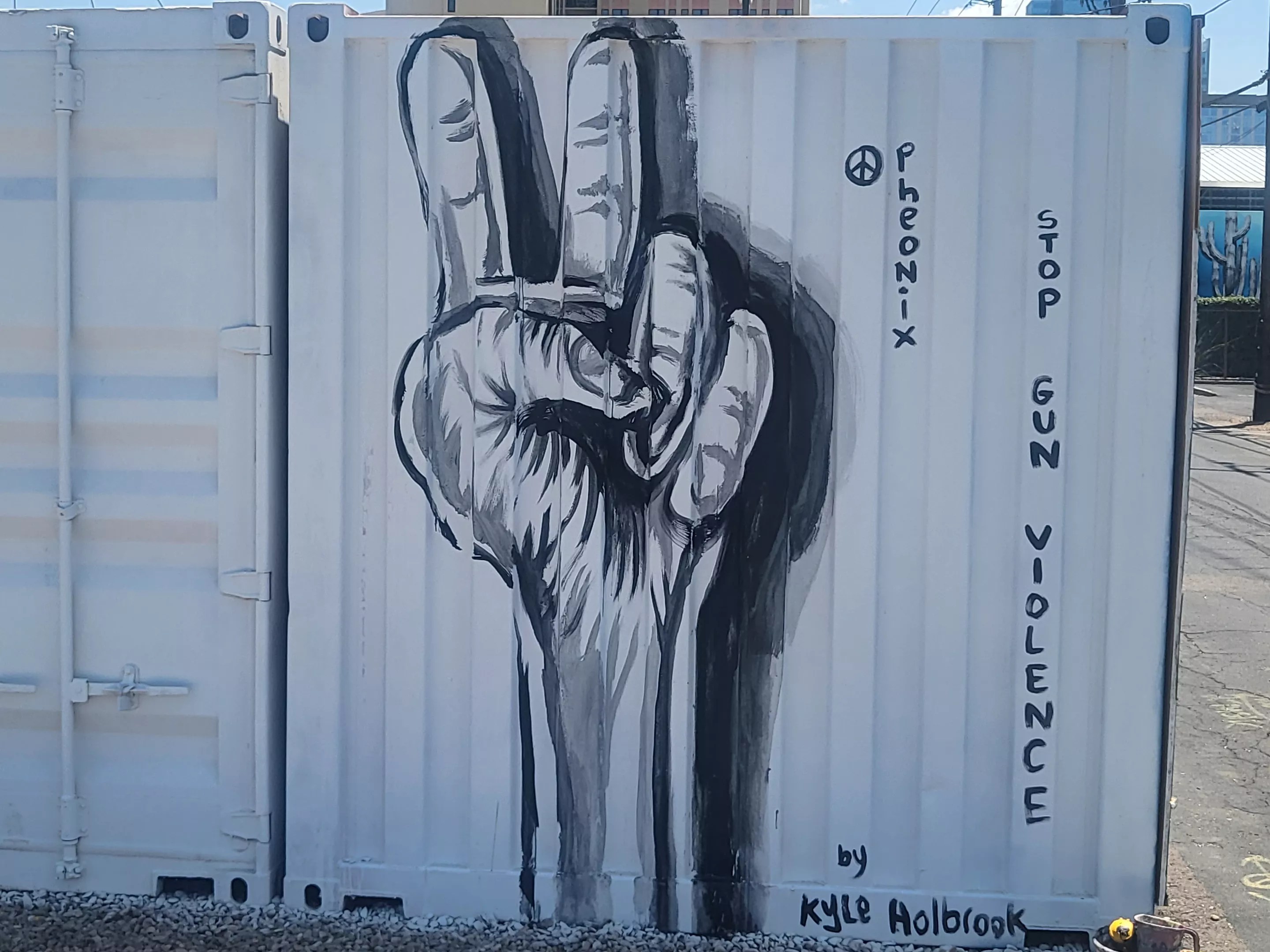 Phoenix also got an extra mural, according to Holbrook. In true street art style, Holbrook saw an open spot and painted an extra peace sign. He figured the empty space would be best utilized with his message rather than blight.