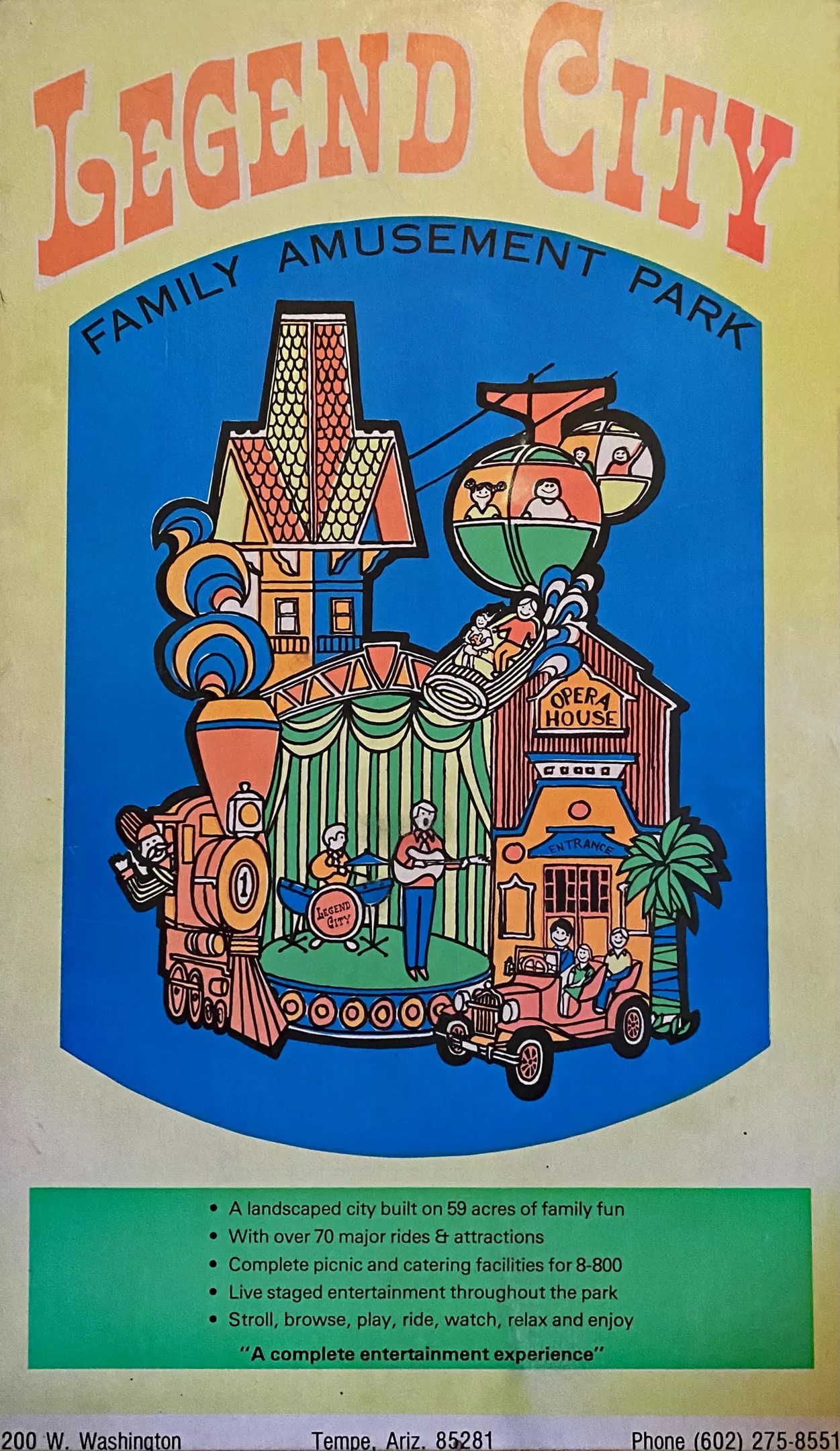 John Dixon, Arizona music historian and Legend City stockholder: A father of a schoolmate was flogging the stock and came to our house with a presentation. It was based on the idea there was supposedly more traffic along Van Buren and Washington [streets] than the highways surrounding Disneyland. My mom was like, “It’s your money. Do whatever you want.” So I bought 50 shares at 50 cents each. It wasn’t the best idea in retrospect.