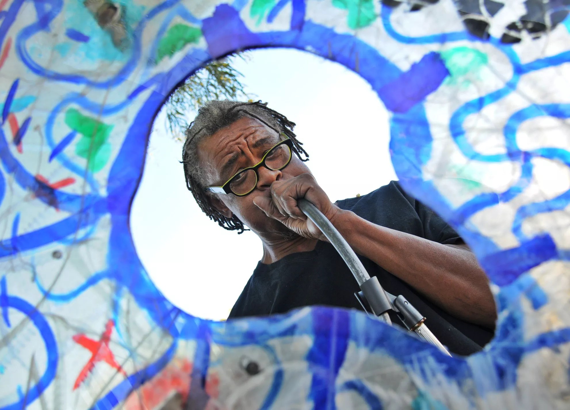 Phoenix-based artist Joe Willie Smith creates sounds on an experimental art project and musical instrument.