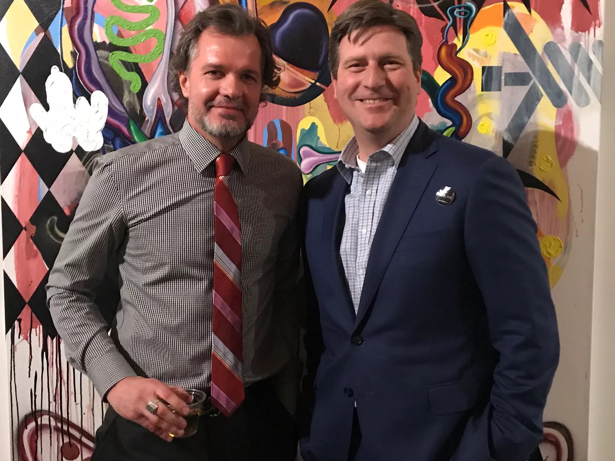 Bill Dambrova and former Phoenix mayor Greg Stanton during a 2018 arts event.