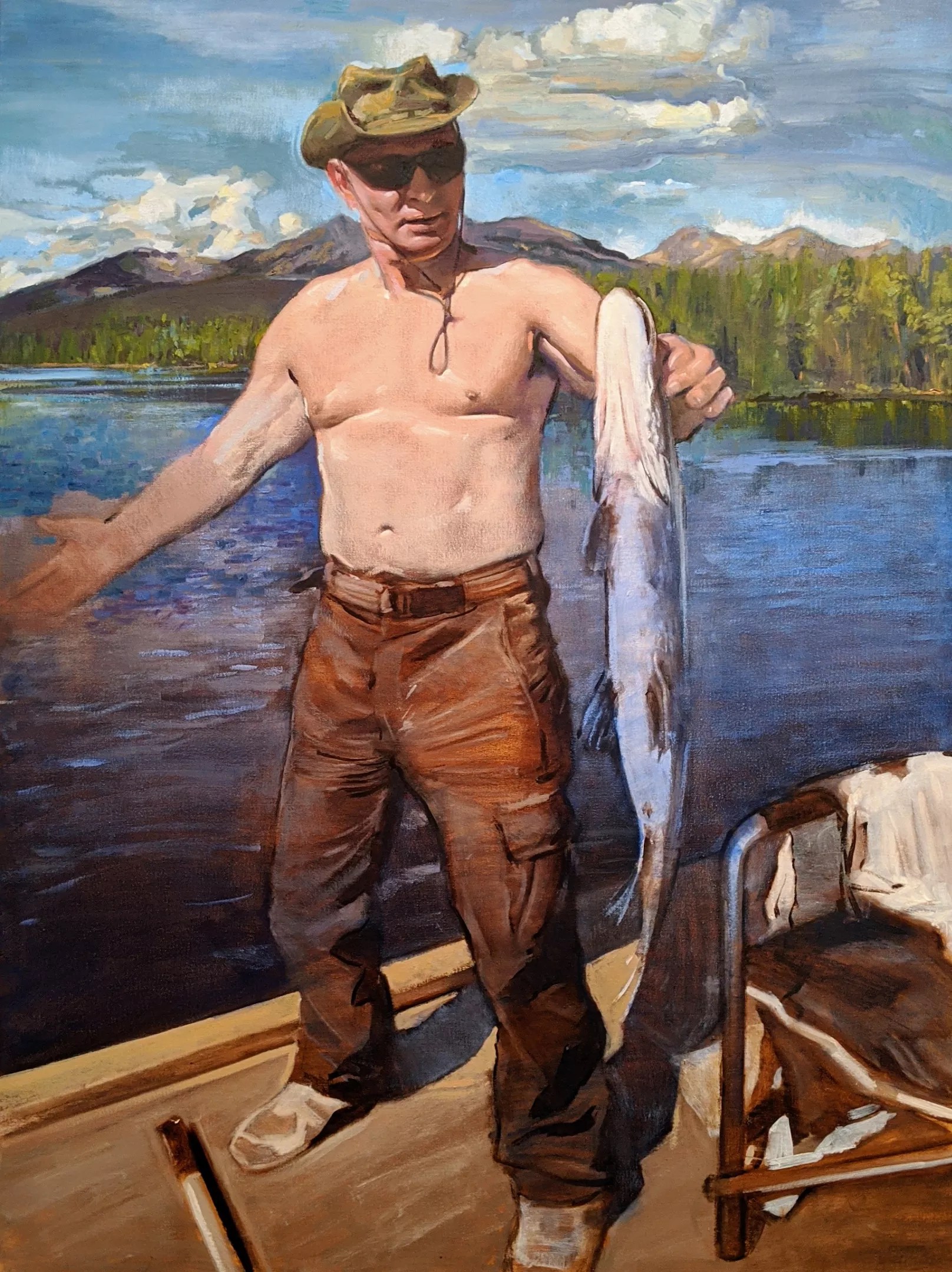 Steve Hampton, A Great Catch, 2020, Oil on linen, 3′ x 4′ (detail).