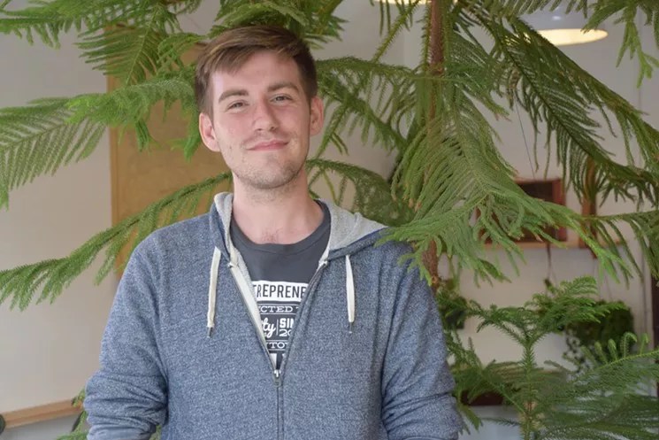 Michael Lanier surrounded by all things green inside The Bosque at Pueblo.