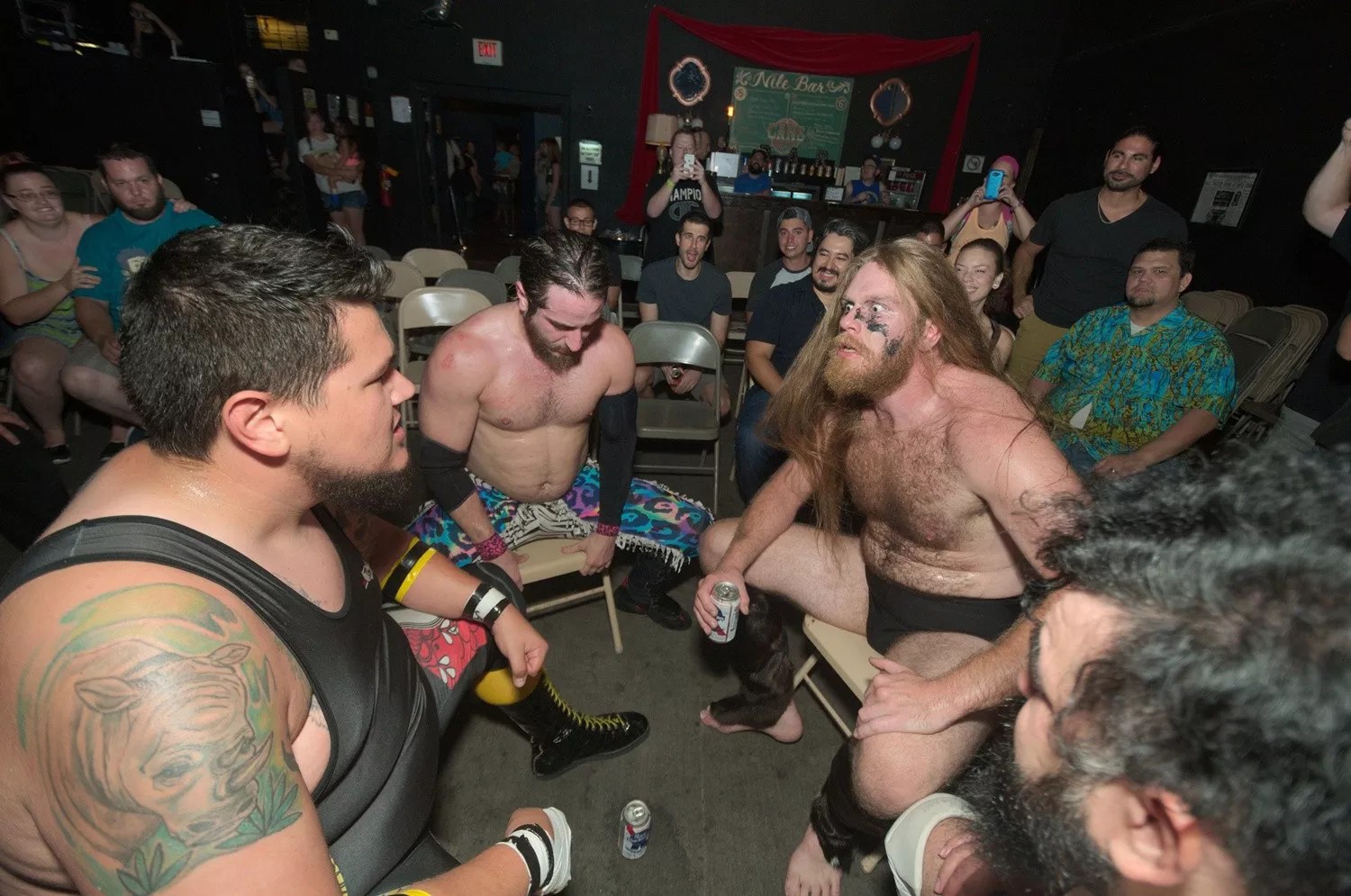 Wrestlers getting into a combination drinking and punching contest at Party Hard’s debut show last year.