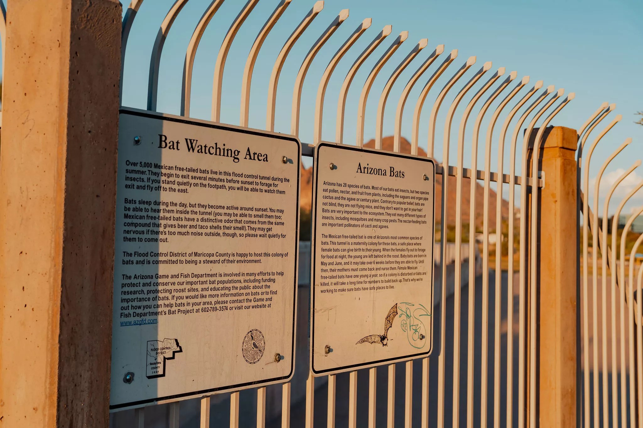 The path: Getting to the Phoenix Bat Cave entails a short walk along the Arizona Canal. Once you’ve parked, start walking on the north side of the canal in the northwest direction (away from the Camelback/40th intersection). After about 10 minutes (depending on your walking speed), an office building on your right will give way to a path that runs parallel to the canal. Jump onto the path and follow it until you see the school and after that, a long fence. Below the fence is the flood control tunnel.
