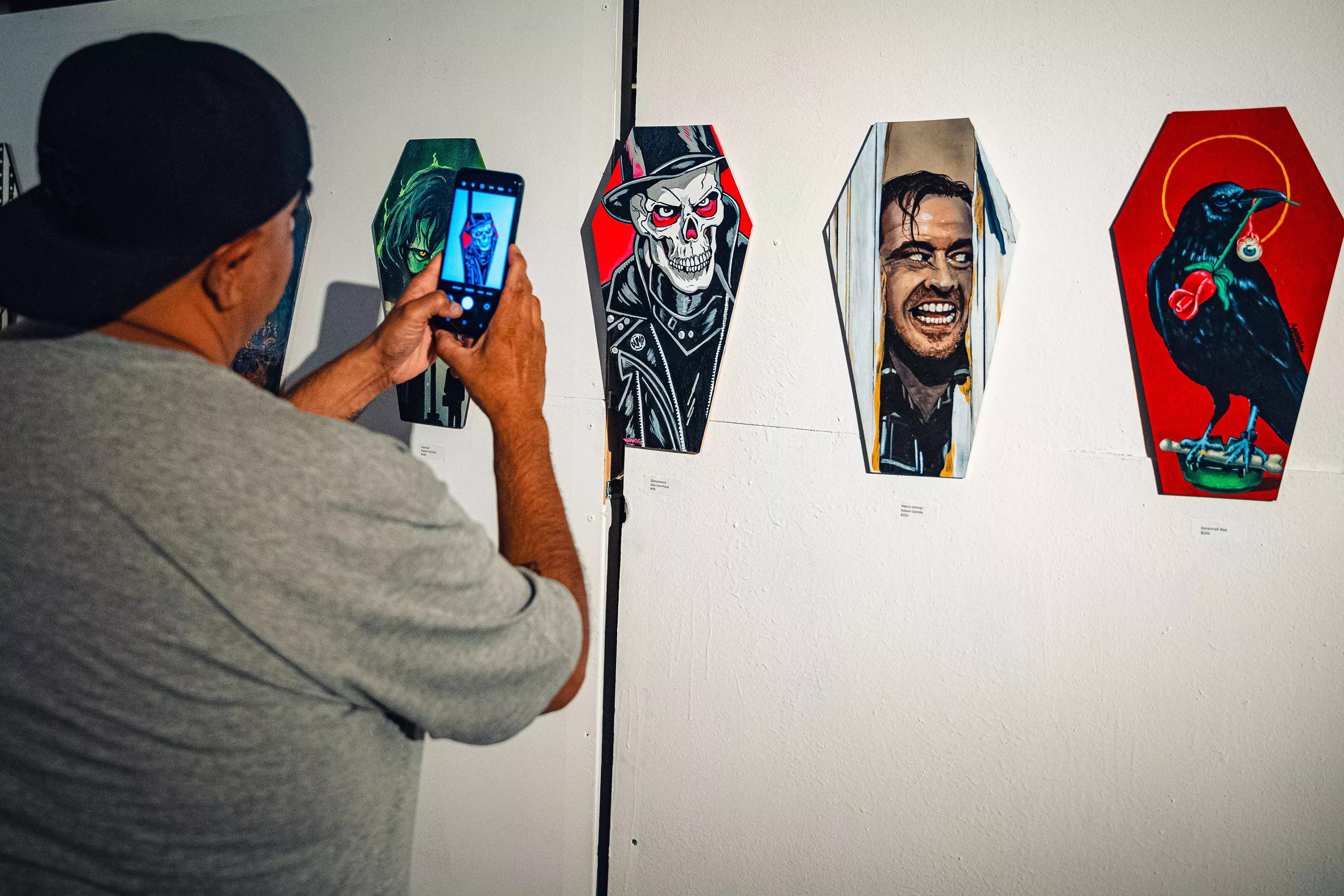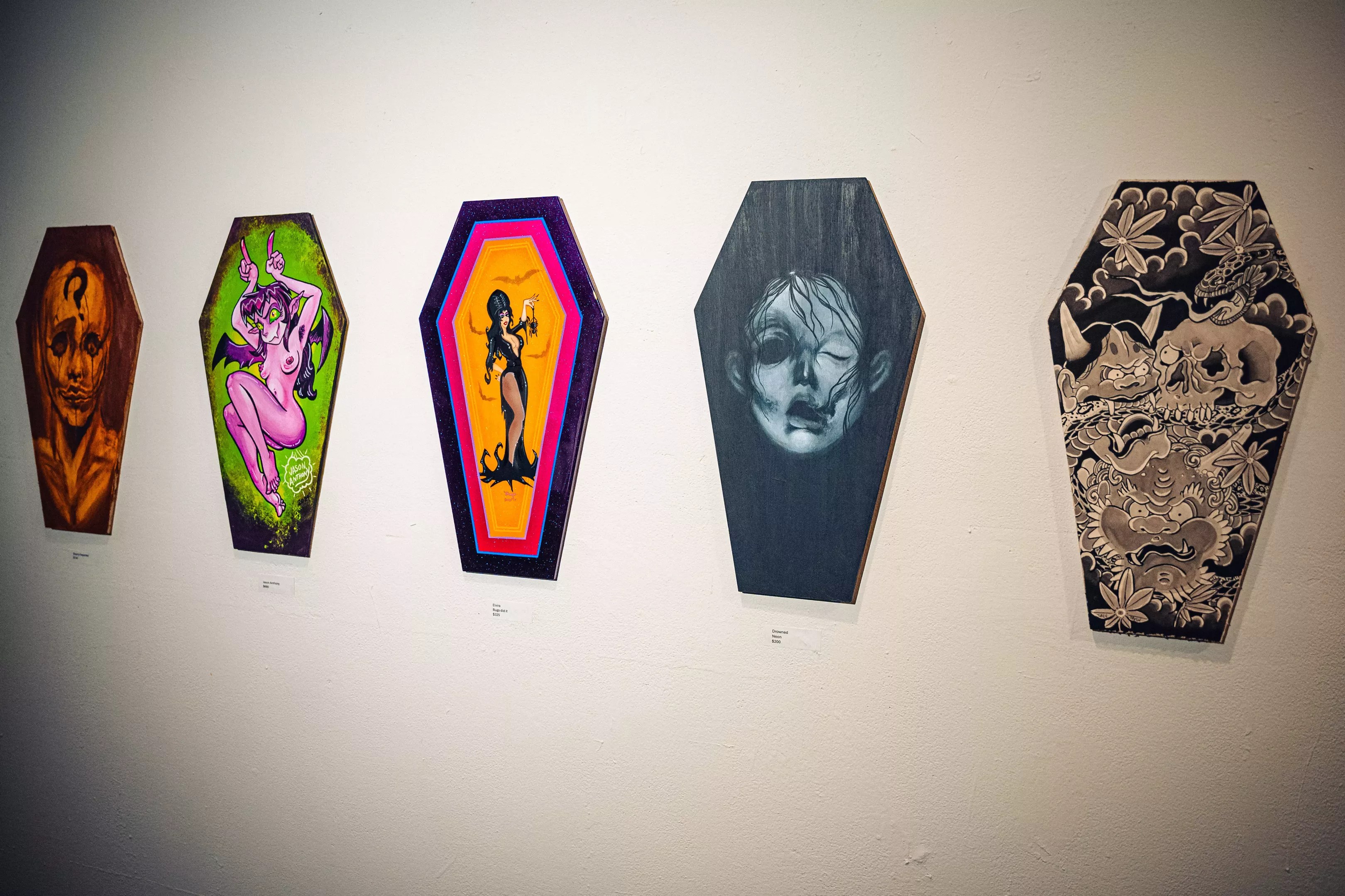 Many of the coffin canvases were horror-movie-themed.