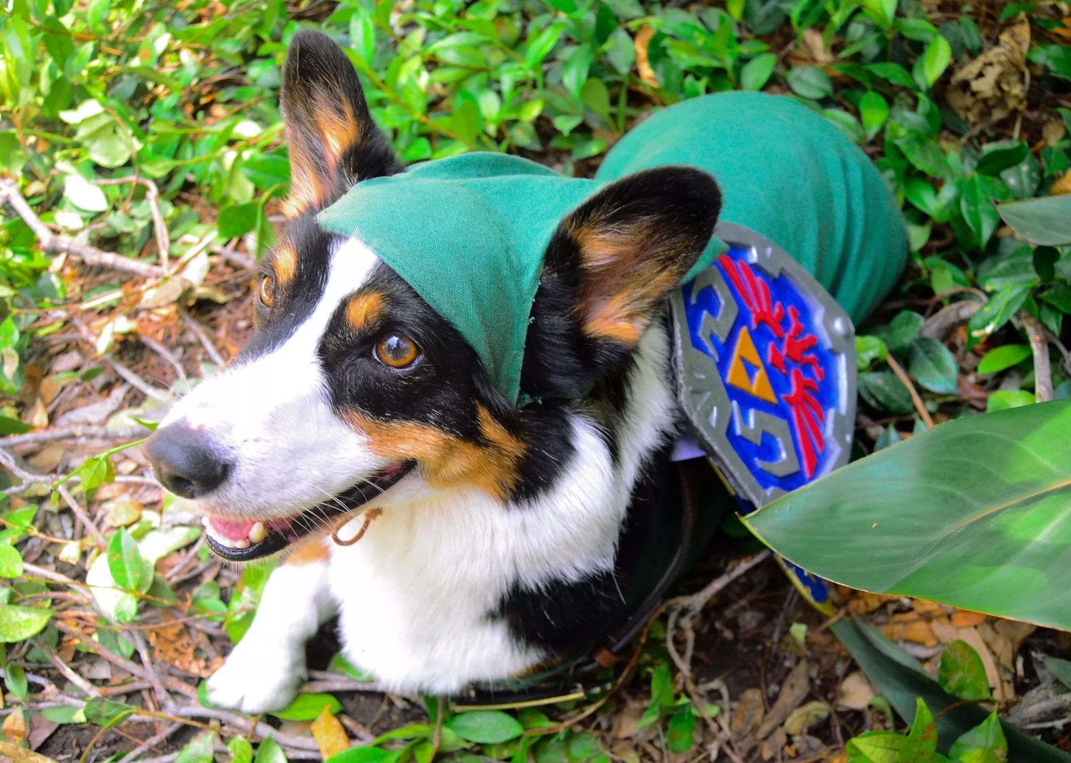 Kiba the Cosplay Corgi as Link from The Legend of Zelda.