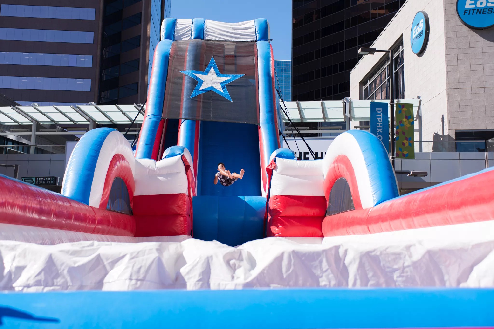 Water’s what it’s all about during Arizona summers, and you can confirm as much when CityScape, 1 East Washington Street, hosts H2Oasis. The event takes over a stretch of Central Avenue and Patriots Park with eight giant water slides, all-ages