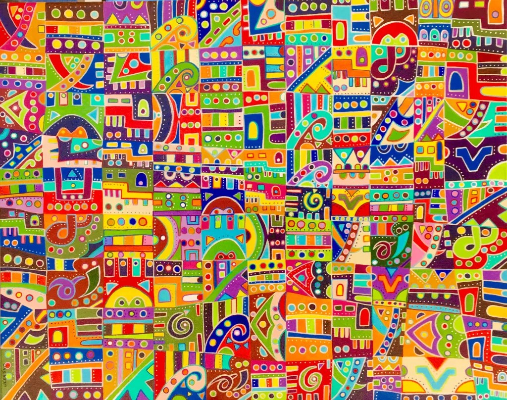 There’s no limit to what you can read into abstract art. See what comes to mind when you check out works by two artists inside the @Central Gallery at Burton Barr Central Library, 1221 North Central Avenue. Jill Centrino’s “Twirling Present, Colorful Future” exhibit features paintings meant to inspire happiness and affection. Melissa
