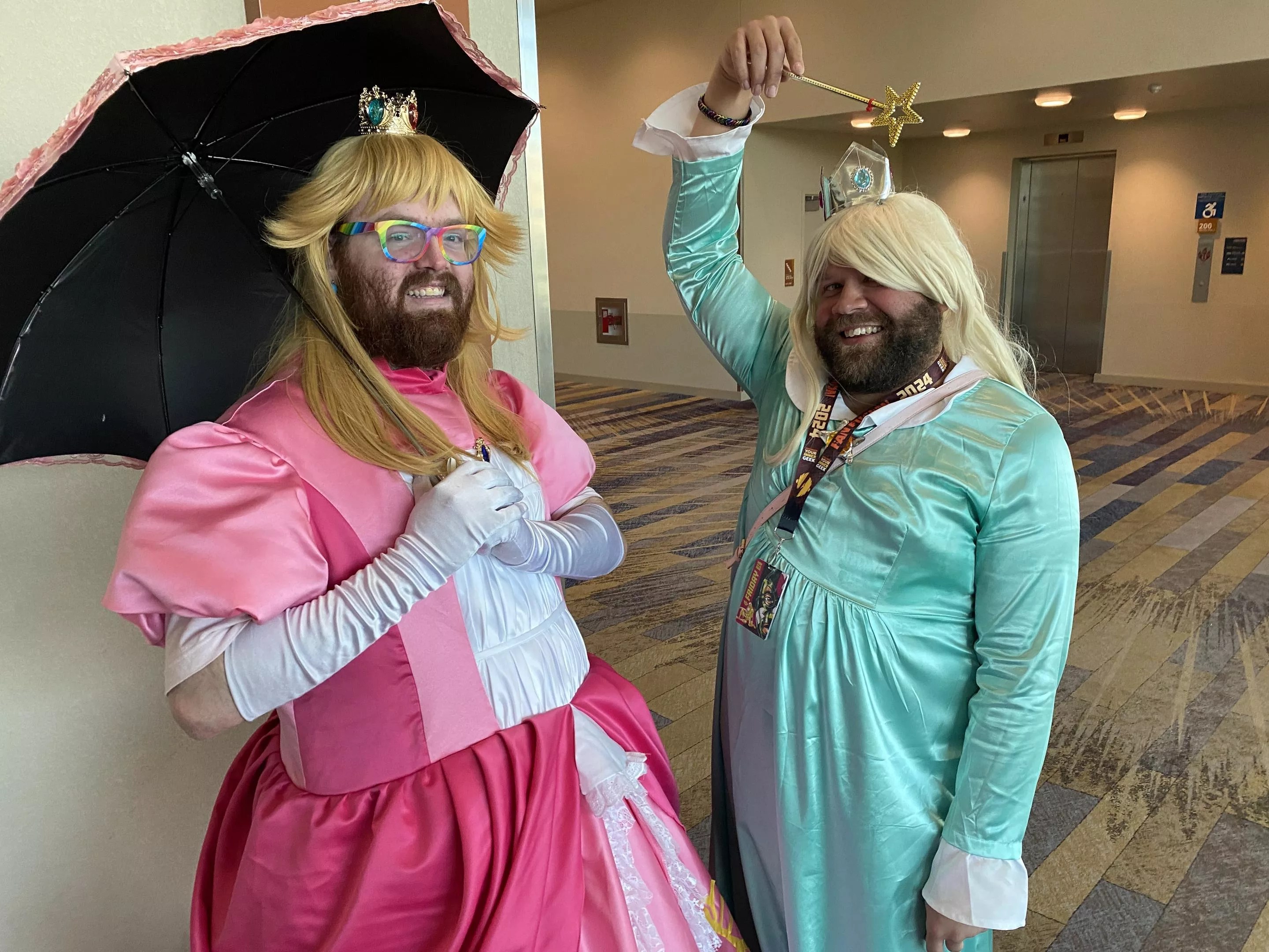 Willie Graves and Joshua Novek made a splash during Fan Fusion’s cosplay fashion show on Friday by respectively dressing as Princess Peach and Rosalina from the Super Mario Bros. series. The pair of longtime gamers each wore stunning floor-length gowns and waltzed down the runway while being cheered by the audience. “These are our two favorite characters, so we thought, ‘If ever there was a place to dress up as them, Fan Fusion was it,'” Graves says. Alex Canto specializes in good cosplay mashups and bad puns. Benjamin Leatherman