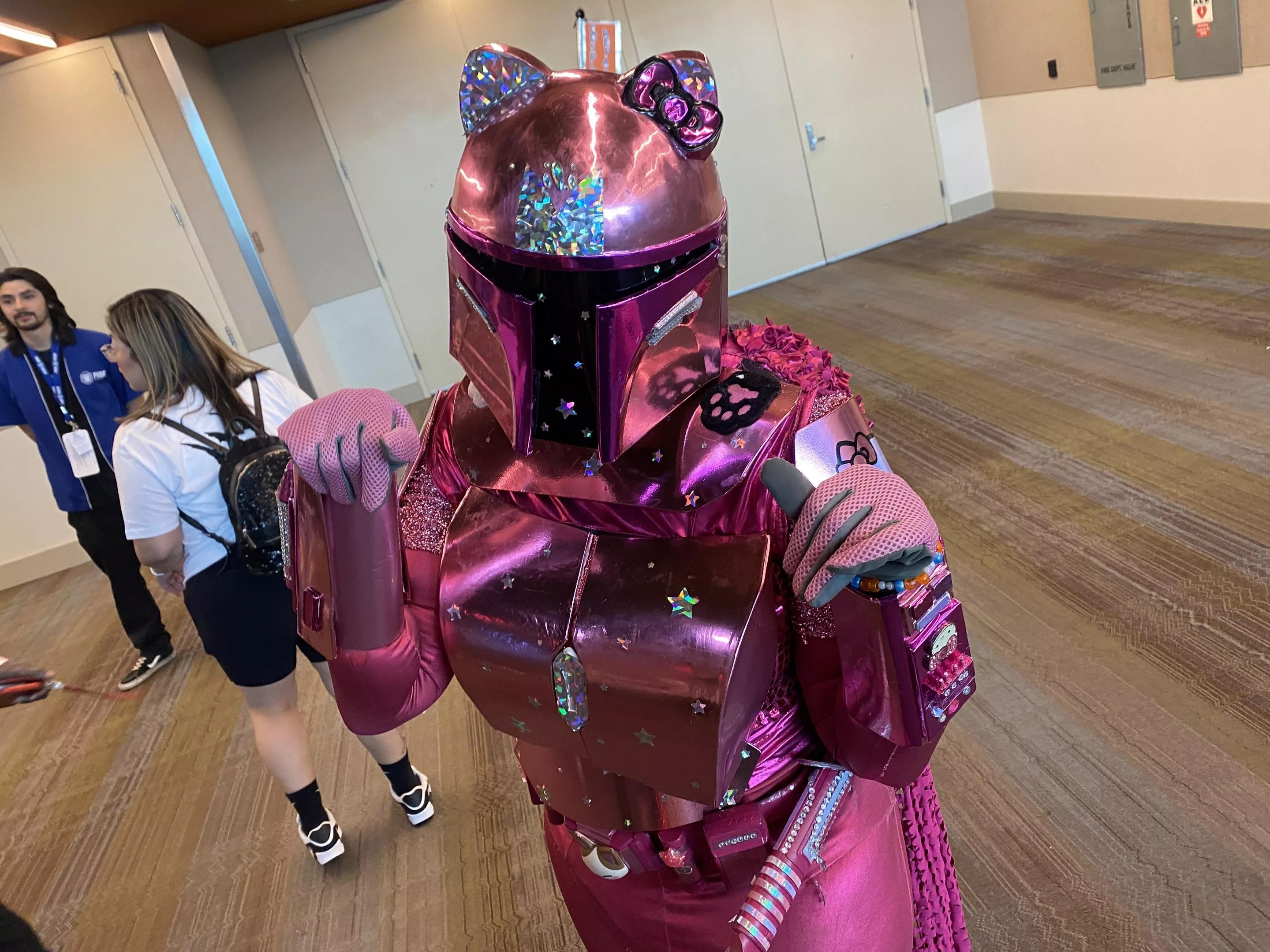 Mesa cosplayer Brooke Nez stole the spotlight at Phoenix Fan Fusion dressed as Hello Kitty Fett, a mashup of Boba Fett and Hello Kitty. Their bright pink plastic armor covered in chrome paint was a purrfect blend of fierce and adorable. This whimsical warrior had fans grinning from ear to ear, proving that even intergalactic bounty hunters can have a cute side. This is the way.