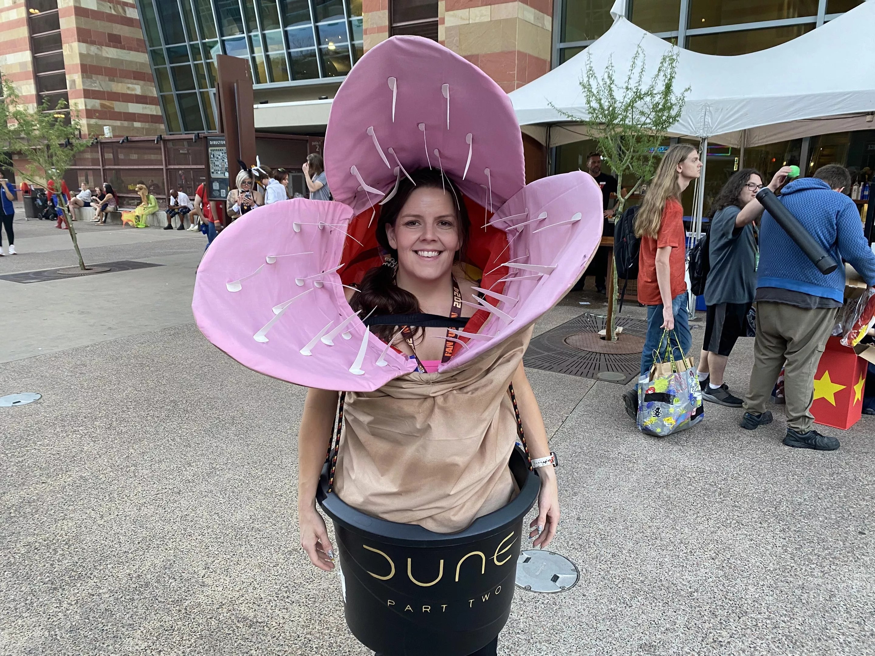 Anything can inspire a memorable Fan Fusion costume. Just ask Amanda Dixon, who cosplayed the “Dune: Part Two” popcorn bucket that went viral earlier this year because of its resemblance to a sex toy. The Mesa resident says the costume was a last-minute project she put together a week before the event. “I made the costume in one day and bought a pass to Fan Fusion just to come in costume,” Dixon says. “I think it’s hilarious. People should have fun with things.”