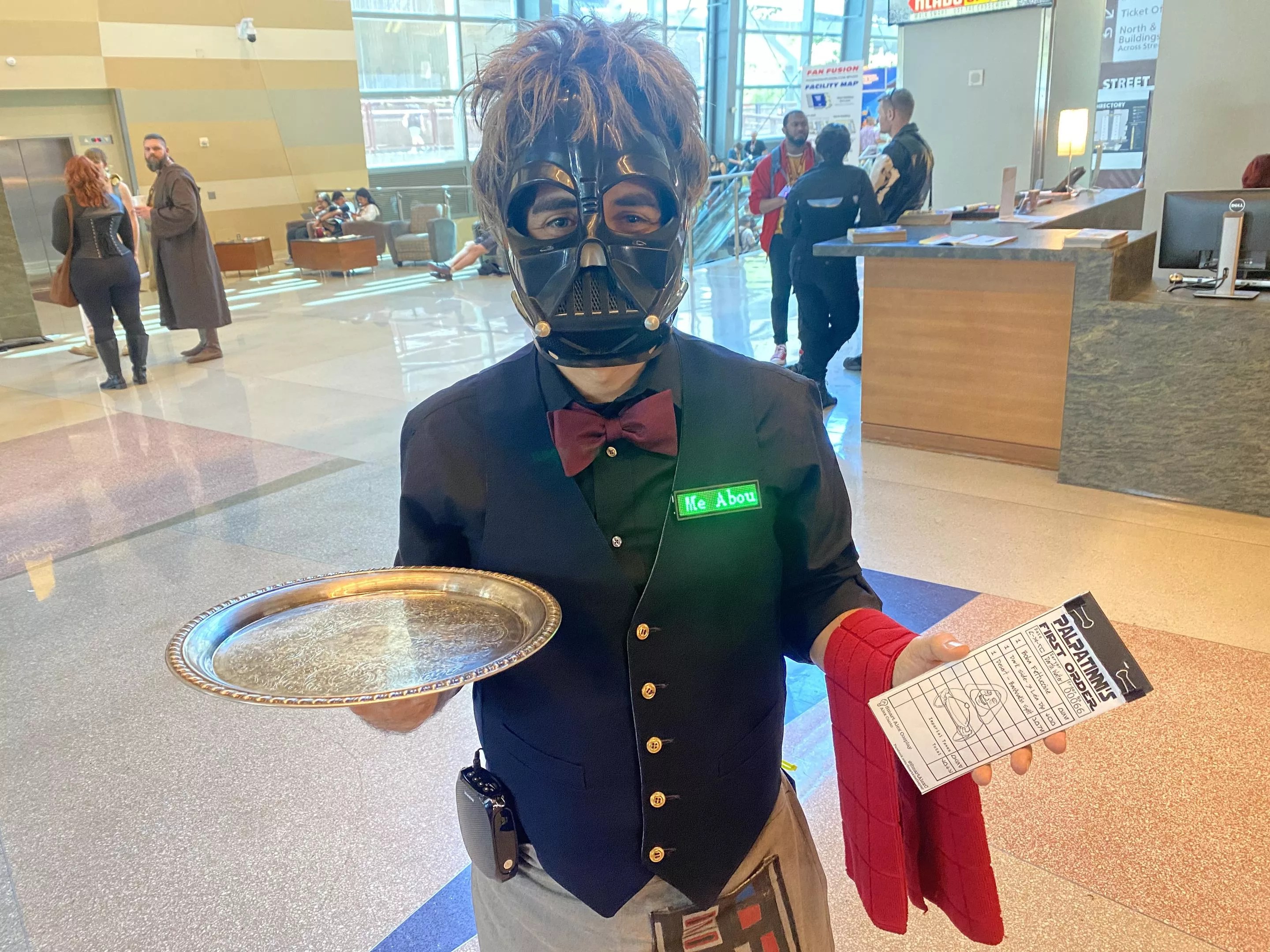 Former Valley resident Alex Canto has a yen for clever costumes, including plenty involving character mashups or groan-worthy puns. In 2017, the cosplayer appeared at what was then Phoenix Comicon as Edgar Allan Poe Dameron, a mix of the late writer and the dashing X-wing pilot from the “Star Wars” sequel trilogy. Two years ago, Canto went viral for his mashup of The Mandalorian and the DeLorean from “Back to the Future.” This year, he came as “Darth Waiter,” who was happy to take our “First Order” for such menu items as “seven-Leia dip” or “Boba fettucine.” May the puns be with him.