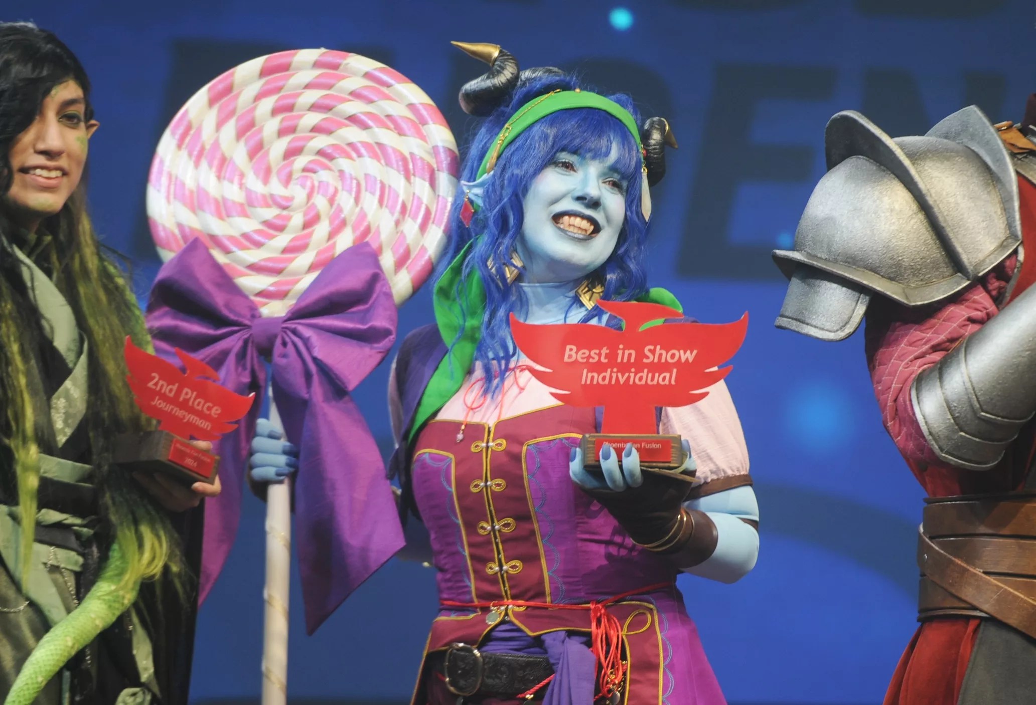 Superheroes of every description attended Fan Fusion 2024, including a few you probably never heard of before. Case in point: Valley resident Brian Baker’s satirical character, Exact Change Man, which he dreamed up himself. “I wanted to build a hero around an abstract concept,” he says. “And I had a change belt.” While he doesn’t posses an alter ego or a secret lair, Baker says his costumed hero has a suitably corny catchphrase: “Today’s loose change is tomorrow’s exact change.” Cosplayer ljordanarts onstage at Fan Fusion’s cosplay masquerade. Benjamin Leatherman