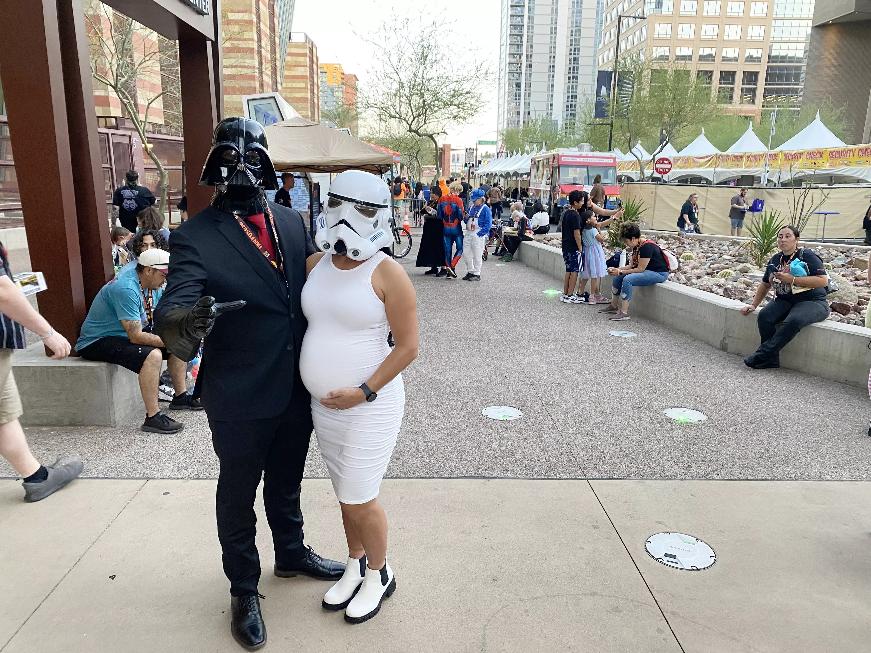 A local couple outside of Phoenix Convention Center during Fan Fusion 2024.