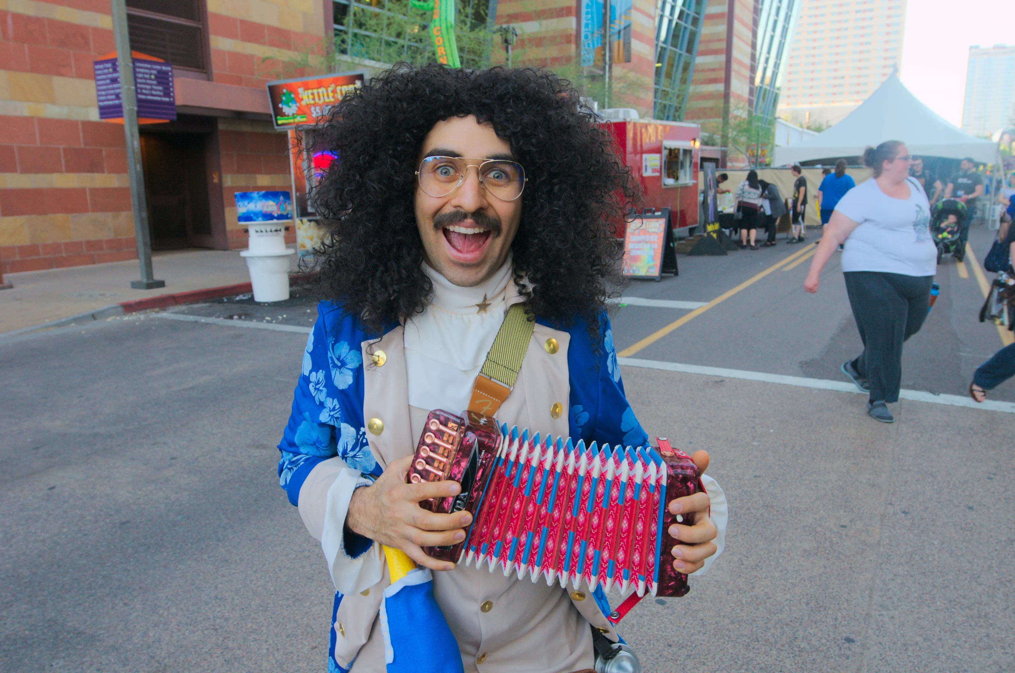 This year, Smart Alex took zany parody musician “Weird Al” Yankovic and mashed up him up with the main character from the ultra-popular Hamilton: An American Musical. The result: Weird Alexander Hamilton, complete with a mini-accordion and rubber chicken version of Aaron Burr. We’d also be remiss if we didn’t mention Smart Alex’s cosplay of Goose, the cat…uh, sorry, Flerken from Captain Marvel. It even featured tentacles of sorts that emerged from his chest. Well done, sir.