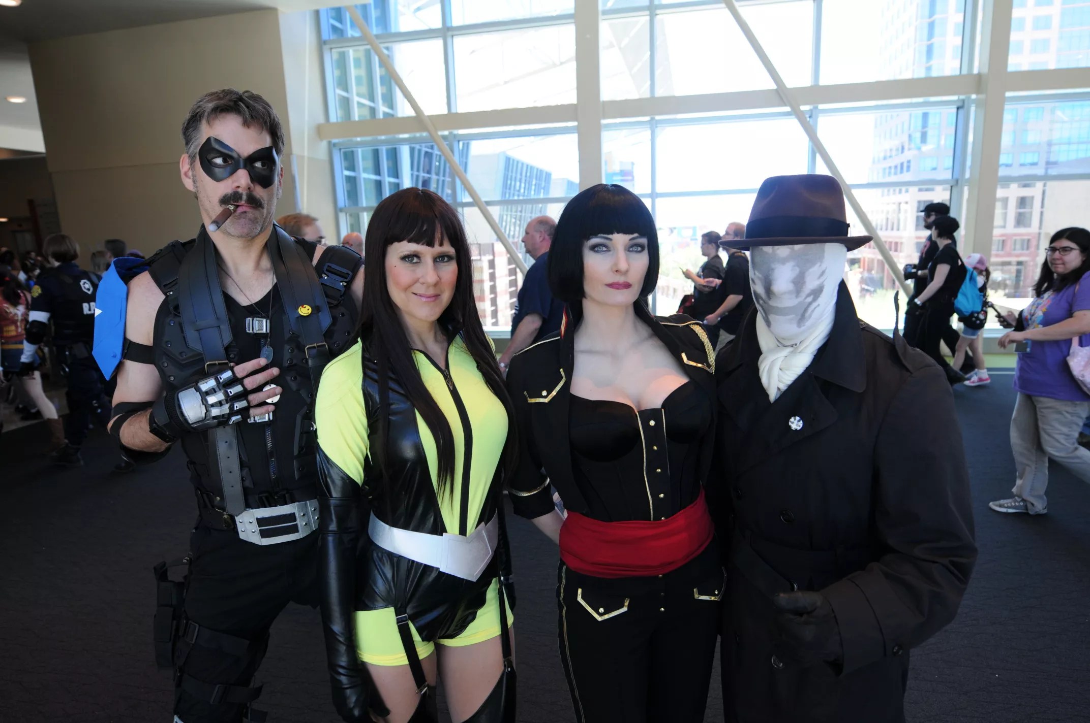 Cosplaying characters from the 2009 superhero film Watchmen.