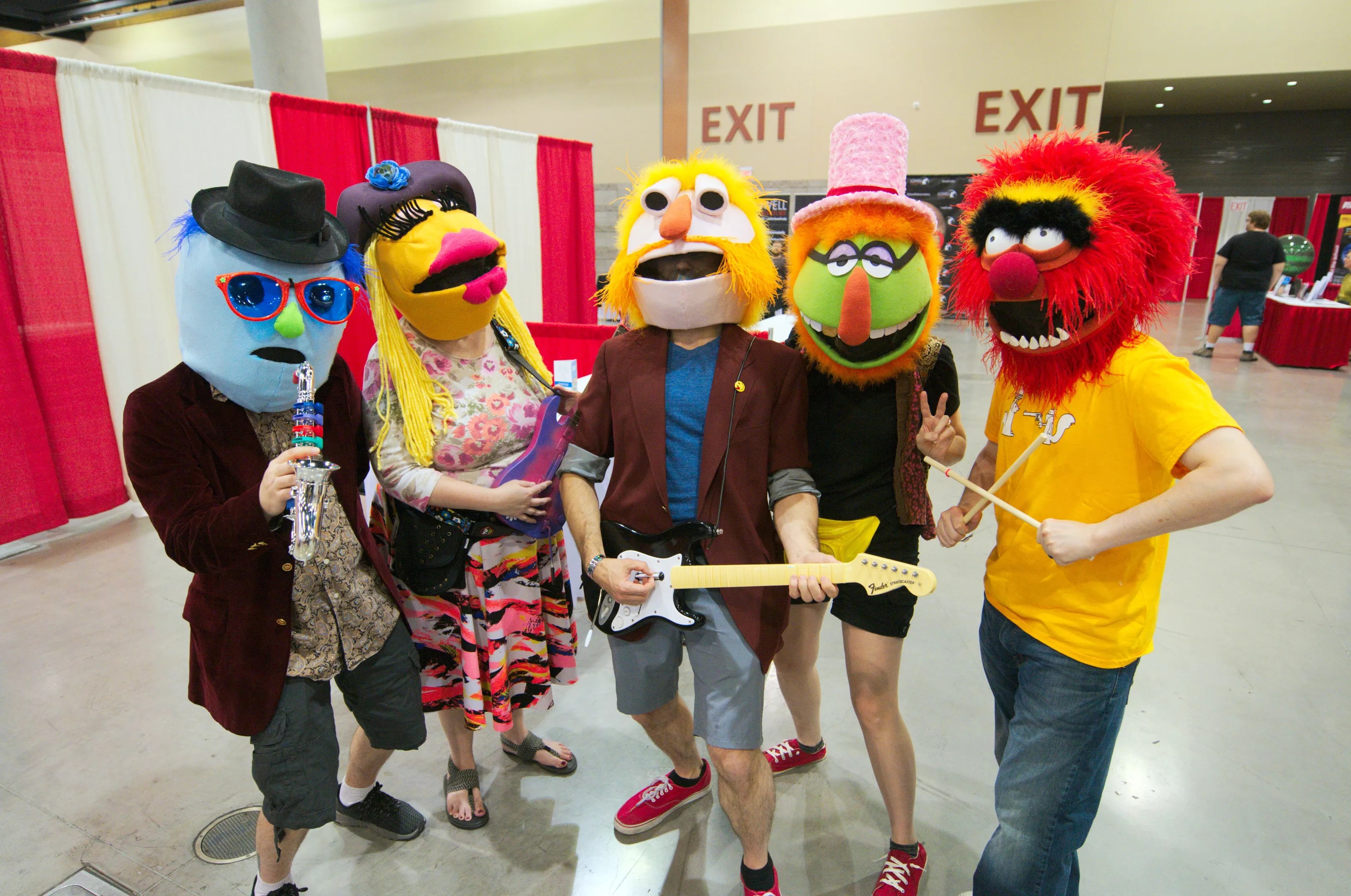 Female cosplayer Emily Unglued and her buddies came all the way from Las Vegas to attend Phoenix Fan Fusion – and they came costumed as a famous group of Muppets. Along with friend and fellow cosplayer Elizabeth Jost, Emily created masks for each the characters in Dr. Teeth and the Electric Mayhem, the house band from the original Muppet Show. All five band members were represented, including Janice, Floyd Pepper, Zoot, and (of course) Animal.